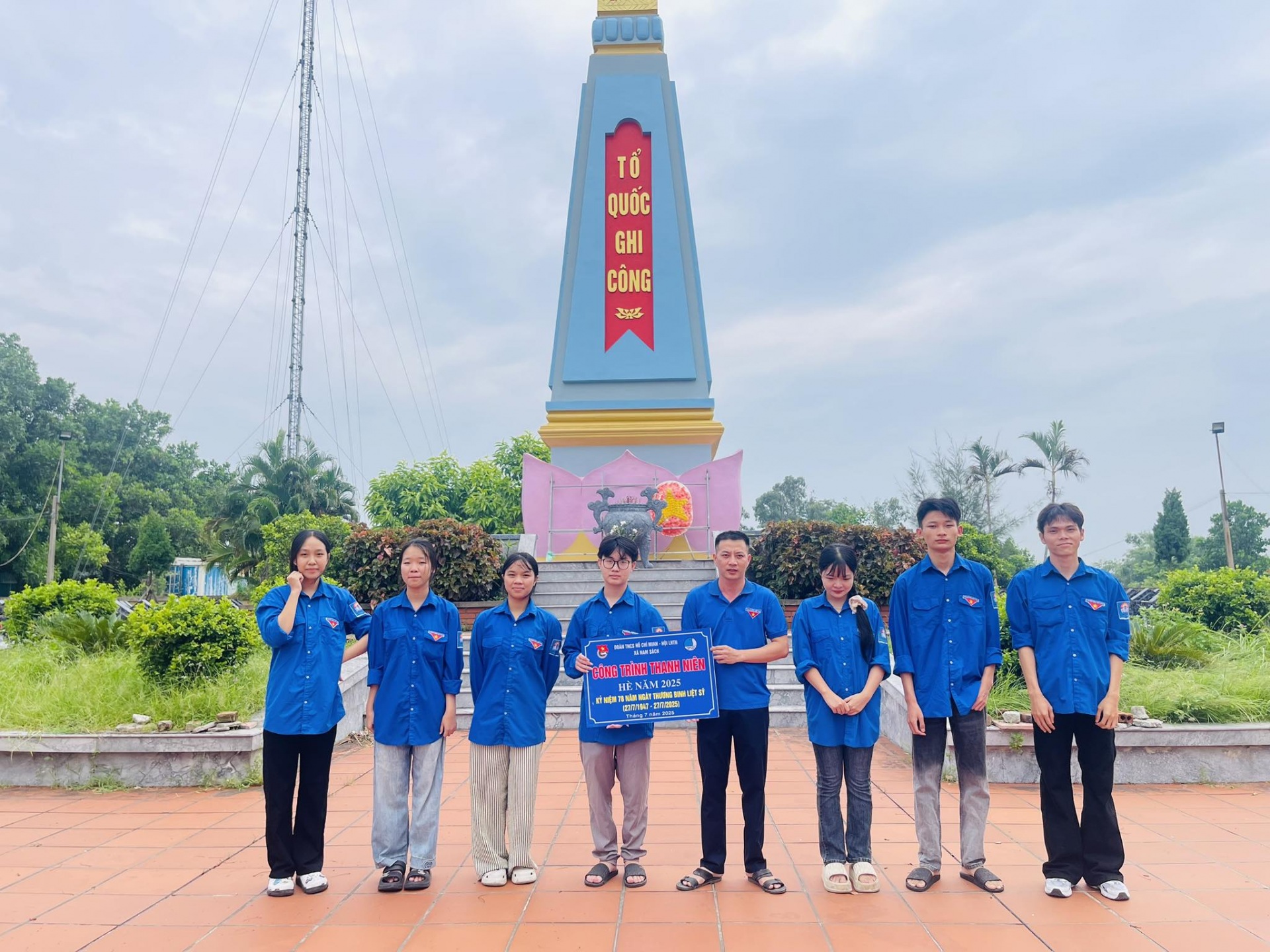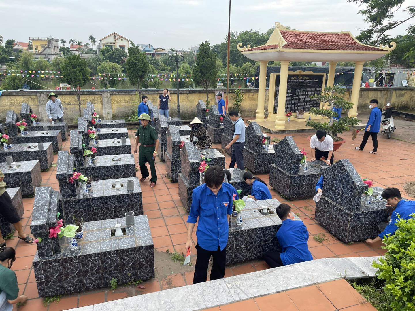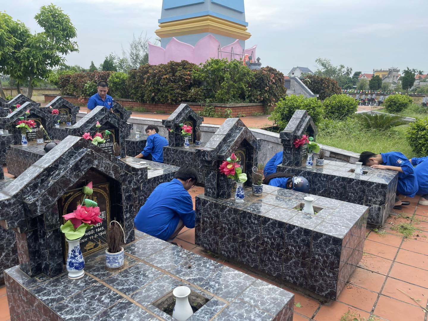 Hưởng ứng các hoạt động tri ân hướng tới kỷ niệm 78 năm Ngày Thương binh – Liệt sĩ (27/7/1947 – 27/7/2025), Ngày 20/7/2025, Đoàn Thanh niên phối hợp cùng các Hội đoàn thể tổ chức ra quân Ngày Chủ nhật xanh dọn vệ sinh môi trường, chỉnh trang cảnh quan khuôn viên các Nghĩa trang liệt sĩ trên địa bàn xã. Xây dựng CÔNG TRÌNH THANH NIÊN hè 2025 .Gắn lọ hoa tại các phần mộ liệt sỹ trị giá 7 triệu đồng.
