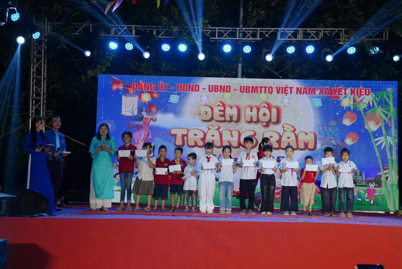 Tiếp nối là chương trình văn nghệ đặc sắc do chính các em học sinh xã Yết Kiêu biểu diễn với những tiết mục múa hát rộn ràng, hồn nhiên mang đậm sắc màu Trung thu truyền thống. Đặc biệt, phần giao lưu cùng Chị Hằng và Chú Cuội trong tiểu phẩm hài hước đã mang đến những tiếng cười sảng khoái và niềm vui trọn vẹn cho các em nhỏ.