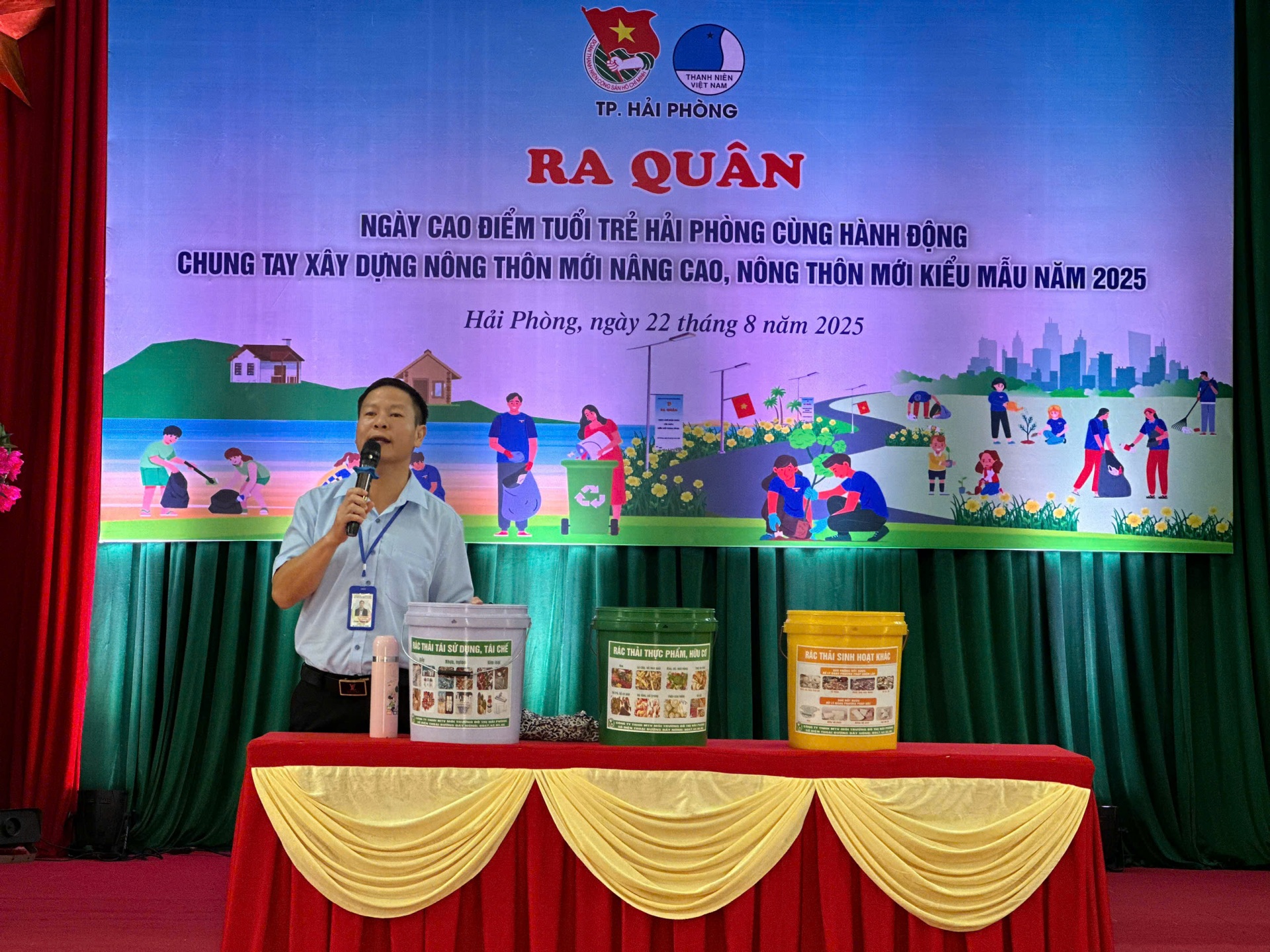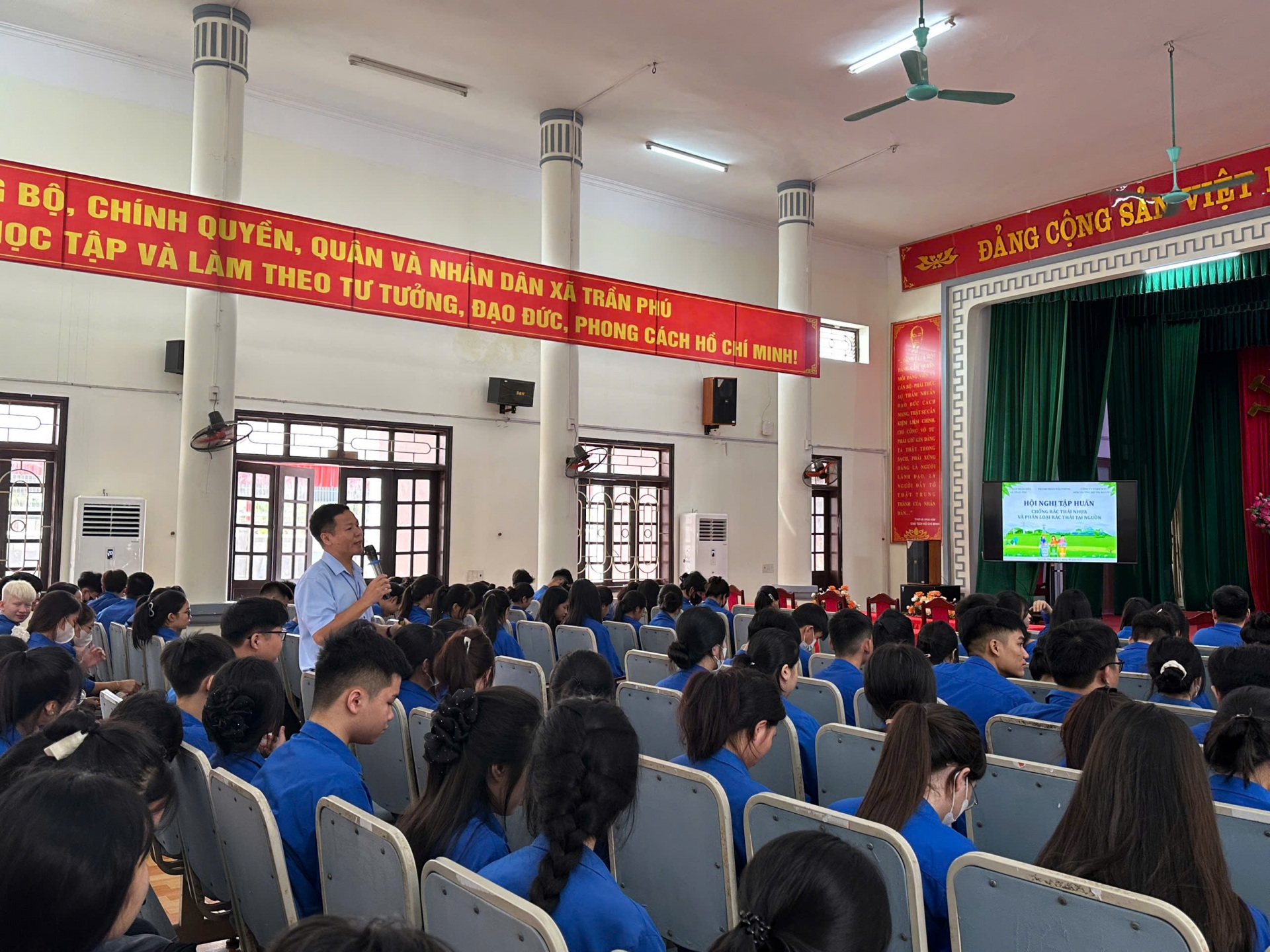 Ngày 22/8/2025, trong khuôn khổ Chương trình Ngày cao điểm “Tuổi trẻ Hải Phòng cùng hành động chung tay xây dựng nông thôn mới nâng cao, nông thôn mới kiểu mẫu”, tại Hội trường UBND xã Trần Phú, Thành đoàn Hải Phòng đã triển khai Mô hình Tập huấn phòng chống rác thải nhựa và phân loại rác thải tại nguồn, Chương trình đã thu hút đông đảo đoàn viên thanh niên và người dân xã tham gia.