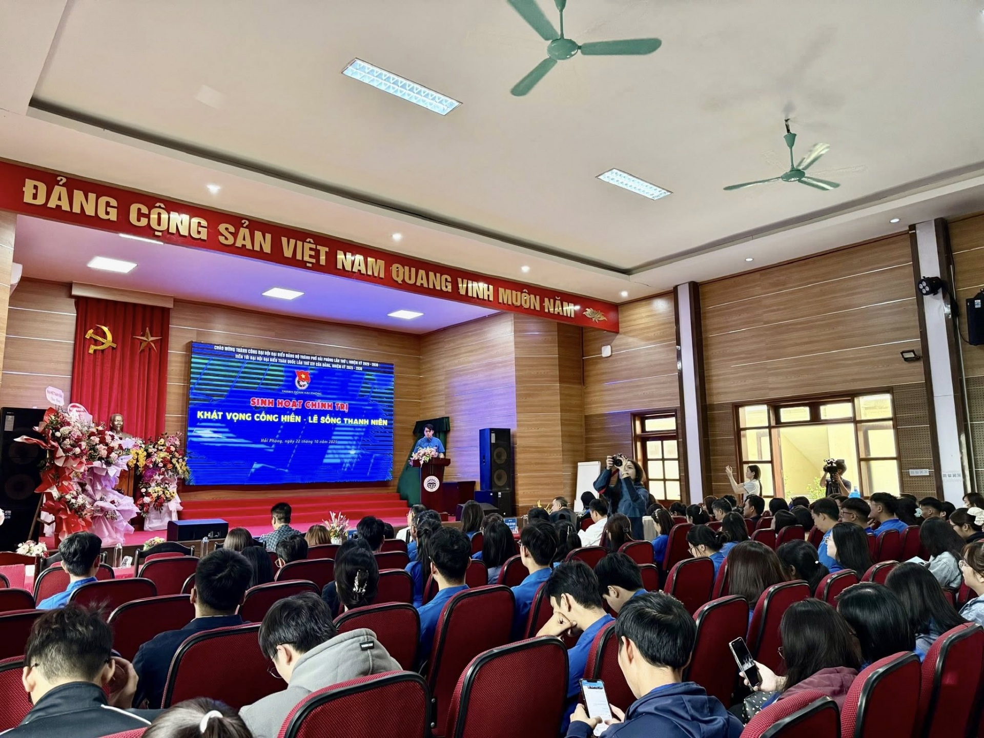 Sáng 22/10, tại Trường Đại học Thành Đông, Ban Thường vụ Thành đoàn Hải Phòng tổ chức sinh hoạt chính trị với chủ đề “Khát vọng cống hiến – Lẽ sống thanh niên”, chào mừng thành công Đại hội đại biểu Đảng bộ thành phố Hải Phòng lần thứ I, nhiệm kỳ 2025–2030, hướng tới Đại hội đại biểu toàn quốc lần thứ XIV của Đảng.