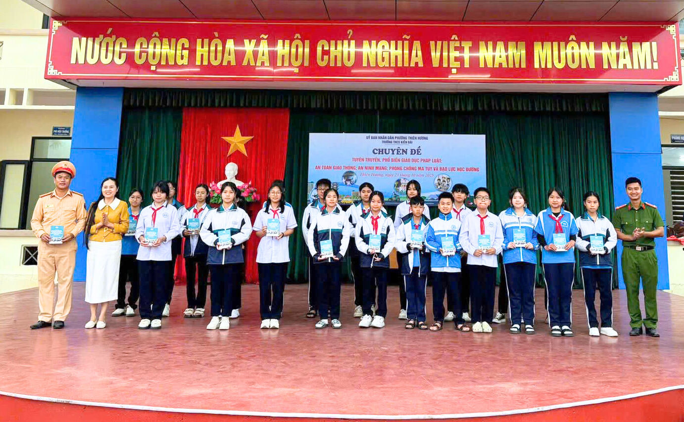 Đoàn Thanh niên phường Thiên Hương phối hợp với Công an phường tổ chức các buổi tuyên truyền về phòng, chống ma túy và an toàn giao thông tại Trụ sở UBND phường, trường THCS Hoàng Động và trường THCS Kiền Bái.