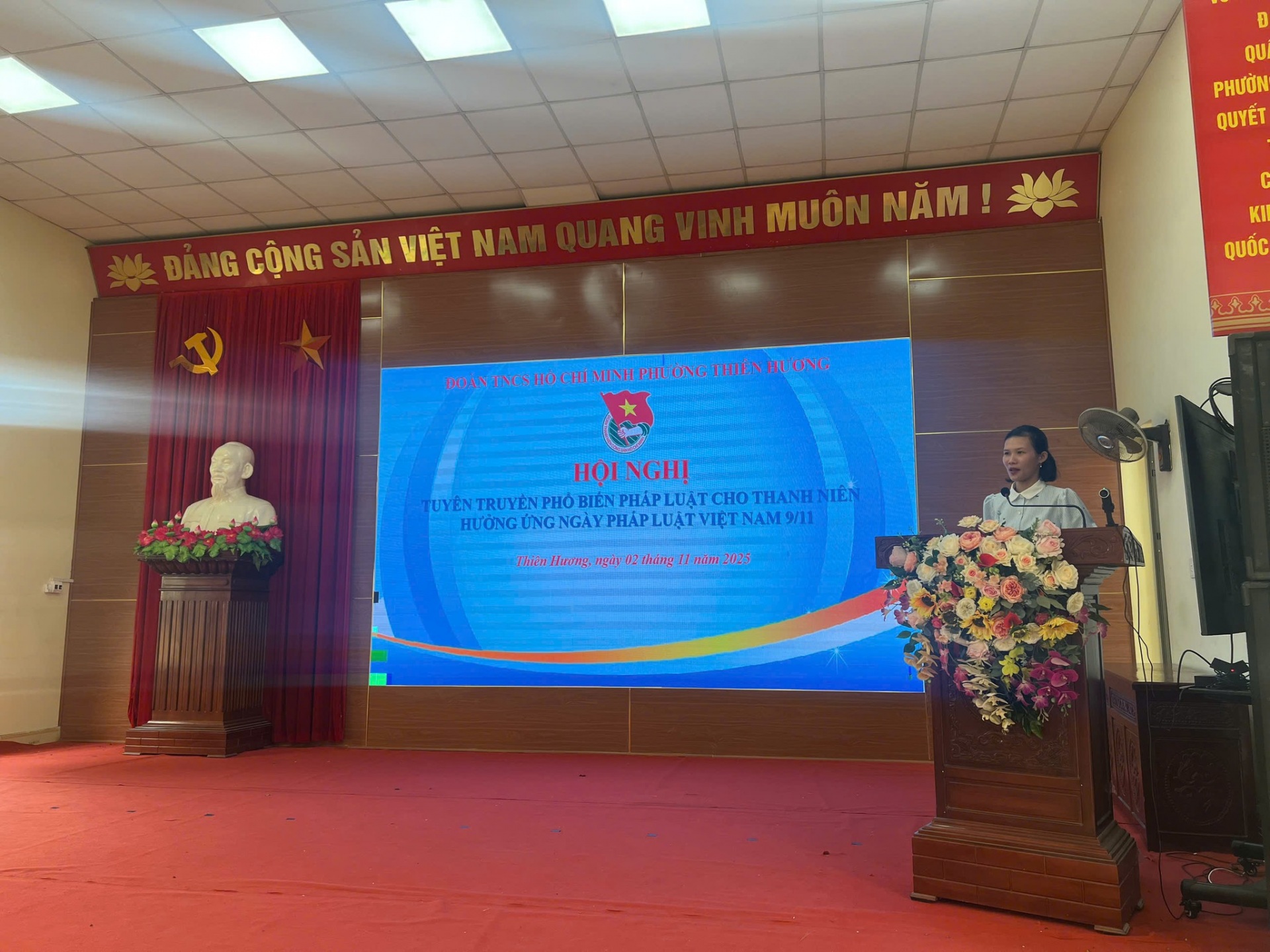 Hoạt động góp phần xây dựng hình ảnh tuổi trẻ Thiên Hương – “Hiểu luật – Sống đẹp – Nói không với ma túy – Đã uống rượu bia không lái xe”, đồng thời phát huy tinh thần xung kích của thanh niên trong việc “Sống và làm việc theo Hiến pháp và pháp luật”.
