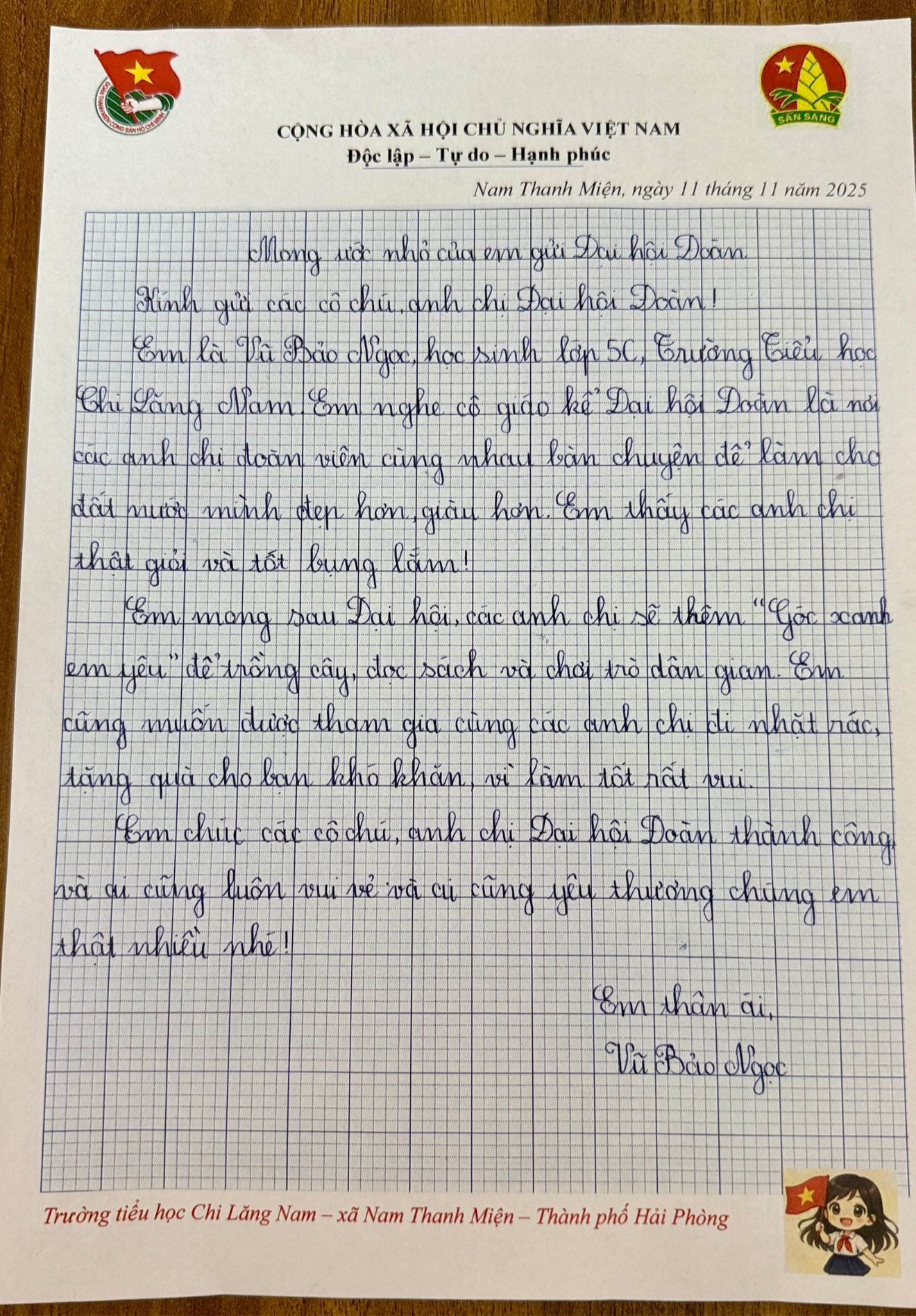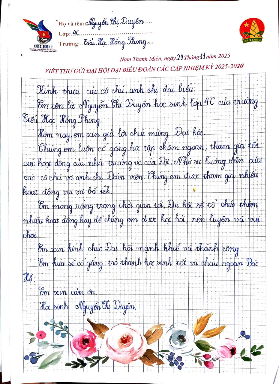 Ngay sau lễ phát động, các em học sinh trong các Liên đội đã hưởng ứng vô cùng sôi nổi. Từng lá thư nhỏ, từng nét chữ còn ngây ngô nhưng chứa đựng biết bao tình cảm, ước mơ và niềm tin của thiếu nhi gửi gắm đến các đại biểu Đoàn.