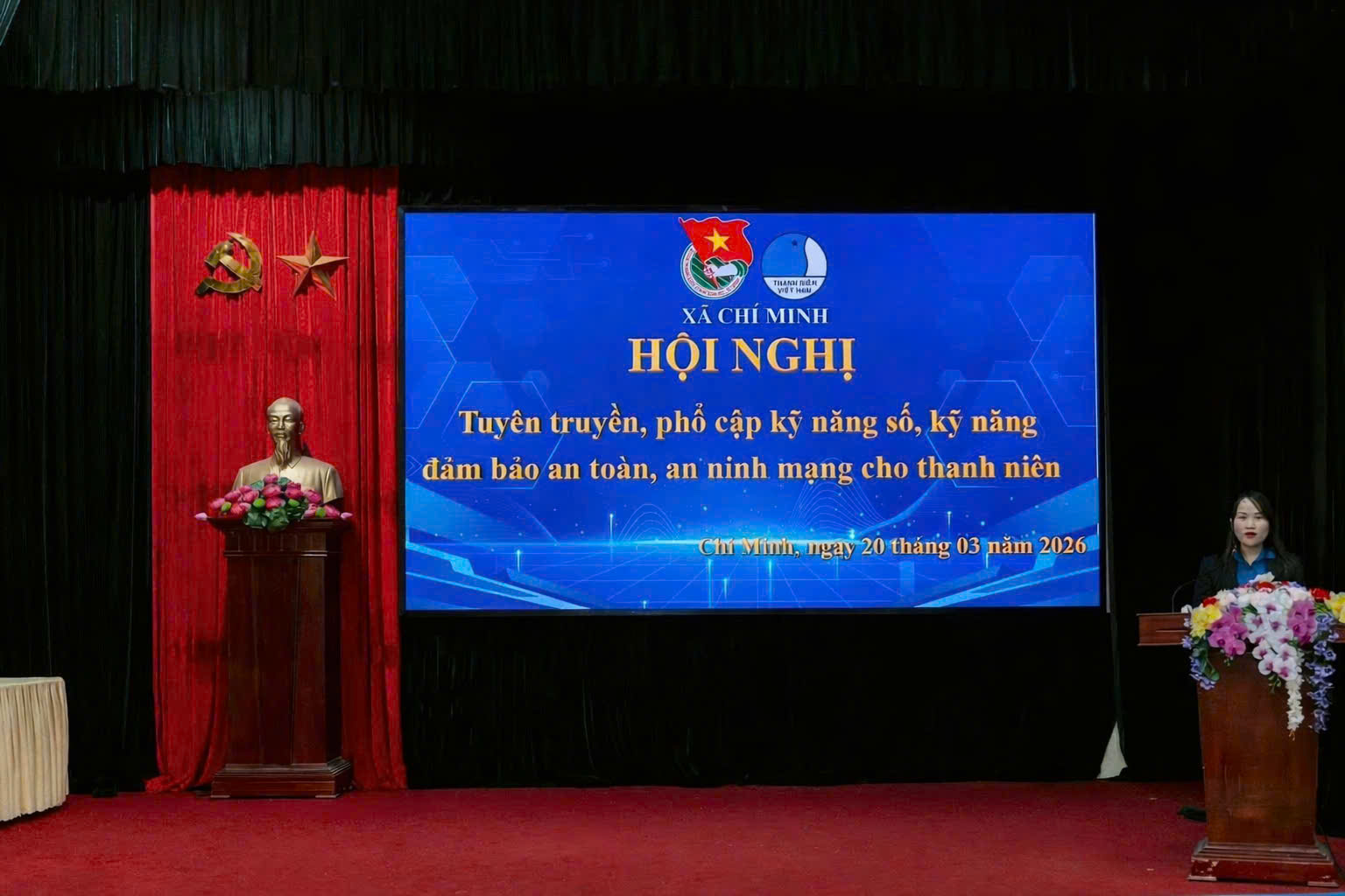 Thực hiện kế hoạch Tháng thanh niên năm 2026, sáng ngày 20/3/2026, Đoàn xã - Hội LHTN Việt Nam xã Chí Minh tổ chức Hội nghị tuyên truyền, phổ cập kỹ năng số, kỹ năng đảm bảo an toàn, an ninh mạng cho gần 100 thanh niên tại Hội trường Trụ sở các cơ quan Đảng xã.