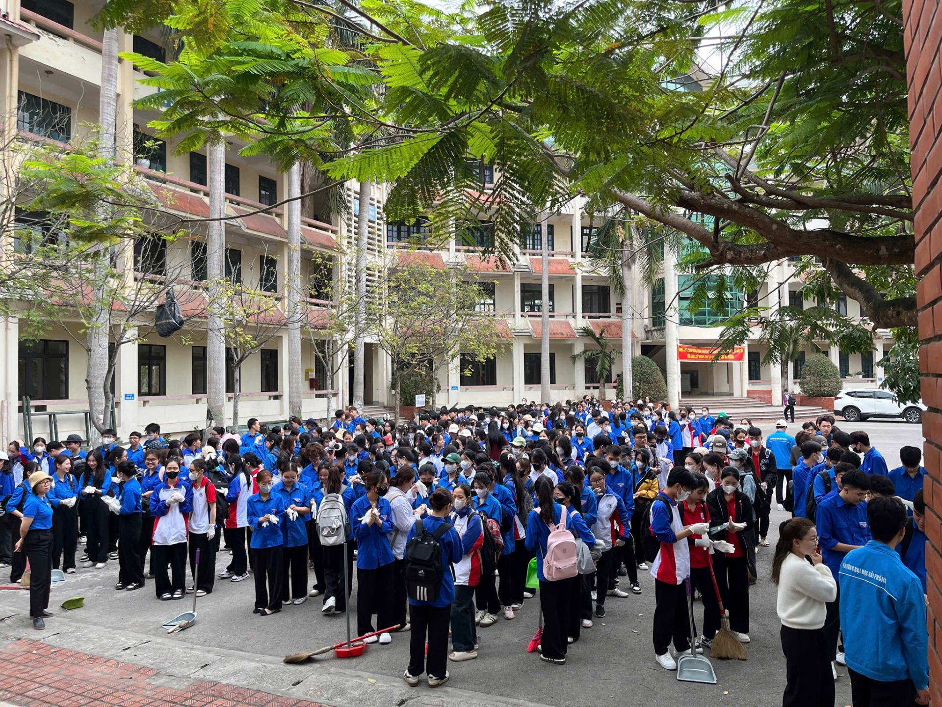 Trong khuôn khổ chương trình, các đoàn viên, sinh viên đã đồng loạt ra quân dọn dẹp khuôn viên nhà trường: thu gom rác, lau dọn lớp học, hành lang, tạo cảnh quan sạch đẹp, thân thiện, đồng thời trồng hơn 600 cây và hoa trước các hành lang, lớp học tạo không khi tươi mát cho học đường.