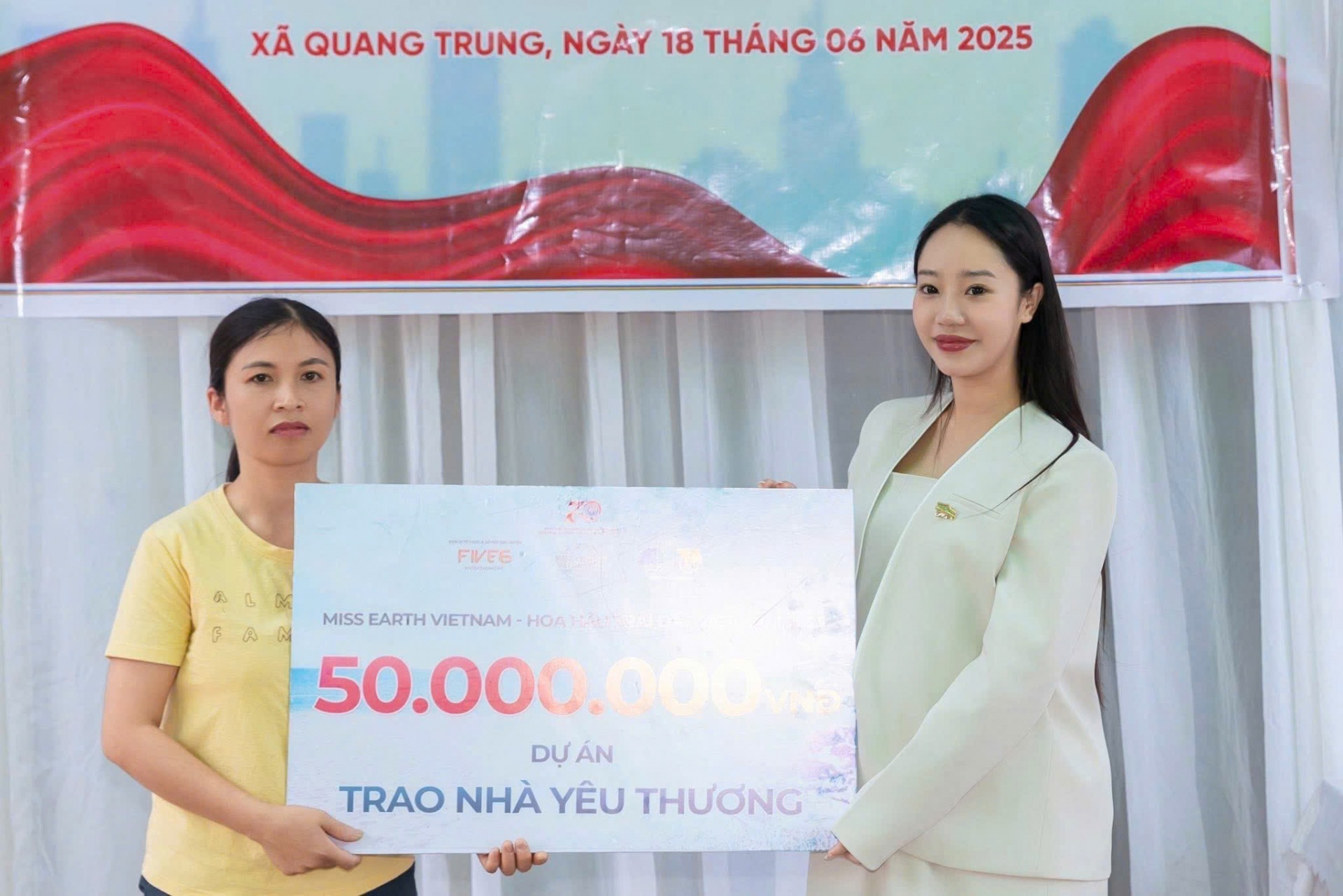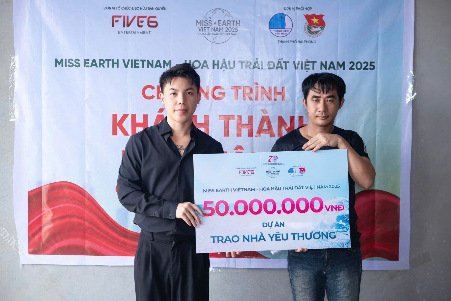 Tại Chương trình, Hội Liên hiệp thanh niên Việt Nam thành phố Hải Phòng phối hợp với Công ty Cổ Phần Giải Trí Five6 và BTC Hoa hậu Trái đất Việt Nam 2025 trao tặng kinh phí xây 02 Nhà với tổng số tiền là 100.000.000đ cho gia đình chị Nguyễn Thuý Hằng (xã Quang Trung, TP. Thuỷ Nguyên) và em Tô Quỳnh Chi (học sinh lớp 5A1 trường TH&THCS Nghĩa Lộ, xã Đồng Bài, huyện Cát Hải). Được biết, đây là những gia đình thuộc diện hộ cận nghèo, có hoàn cảnh đặc biệt khó khăn, không có thu nhập ổn định trên địa bàn.