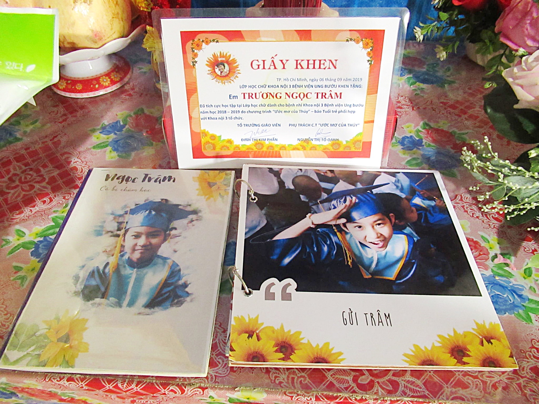 Câu chuyện của Khang chỉ là một trong hàng trăm câu chuyện mà lớp "Hoa hướng dương" đã lưu giữ. Có em theo học suốt nhiều năm như em Phùng Thị Ngọc Chi (Vĩnh Long) - em mất khi mới 11 tuổi. Có lần, ba học trò cưng qua đời cùng một ngày - tin nhắn báo về khiến cô bàng hoàng cả ngày, cô gói ghém kỷ vật rồi lại lên đường. Cô Phấn không chỉ dạy chữ, cô còn mua máy ảnh để chụp từng học trò. "Cô nghĩ đến một ngày nào đó các bé đi xa thì những hình ảnh này sẽ là kỷ vật vô giá đối với gia đình", cô nói. Những bức ảnh, những quyển vở, những bài văn - có khi chỉ là vài dòng nguệch ngoạc của một đứa trẻ trên giường bệnh - nhưng với cha mẹ, đó là cả một đời người.