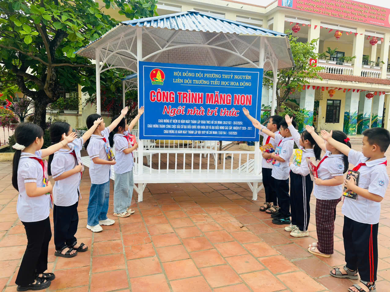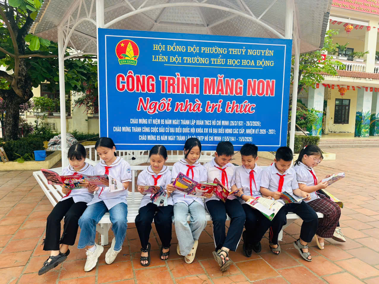 Hướng tới kỷ niệm 95 năm Ngày thành lập Đoàn TNCS Hồ Chí Minh (26/3/1931 – 26/3/2026), chào mừng thành công cuộc bầu cử đại biểu Quốc hội khóa XVI và HĐND các cấp, đồng thời hướng tới kỷ niệm 85 năm Ngày thành lập Đội TNTP Hồ Chí Minh (15/5/1941 – 15/5/2026), Liên đội Trường Tiểu học Hoa Động đã tổ chức khánh thành công trình măng non “Ngôi nhà tri thức”.