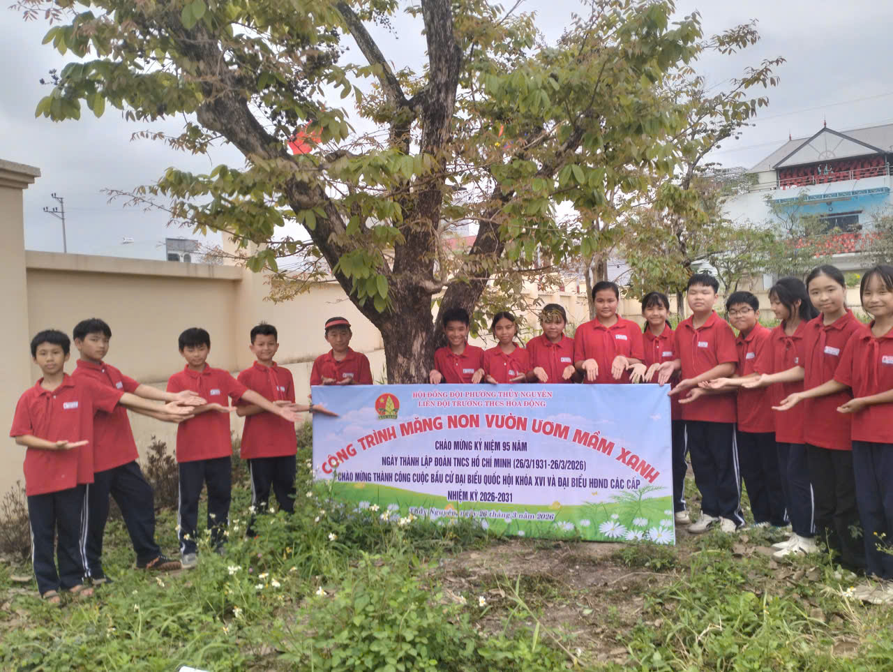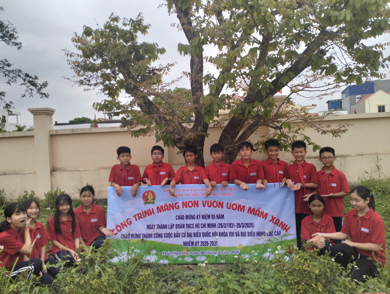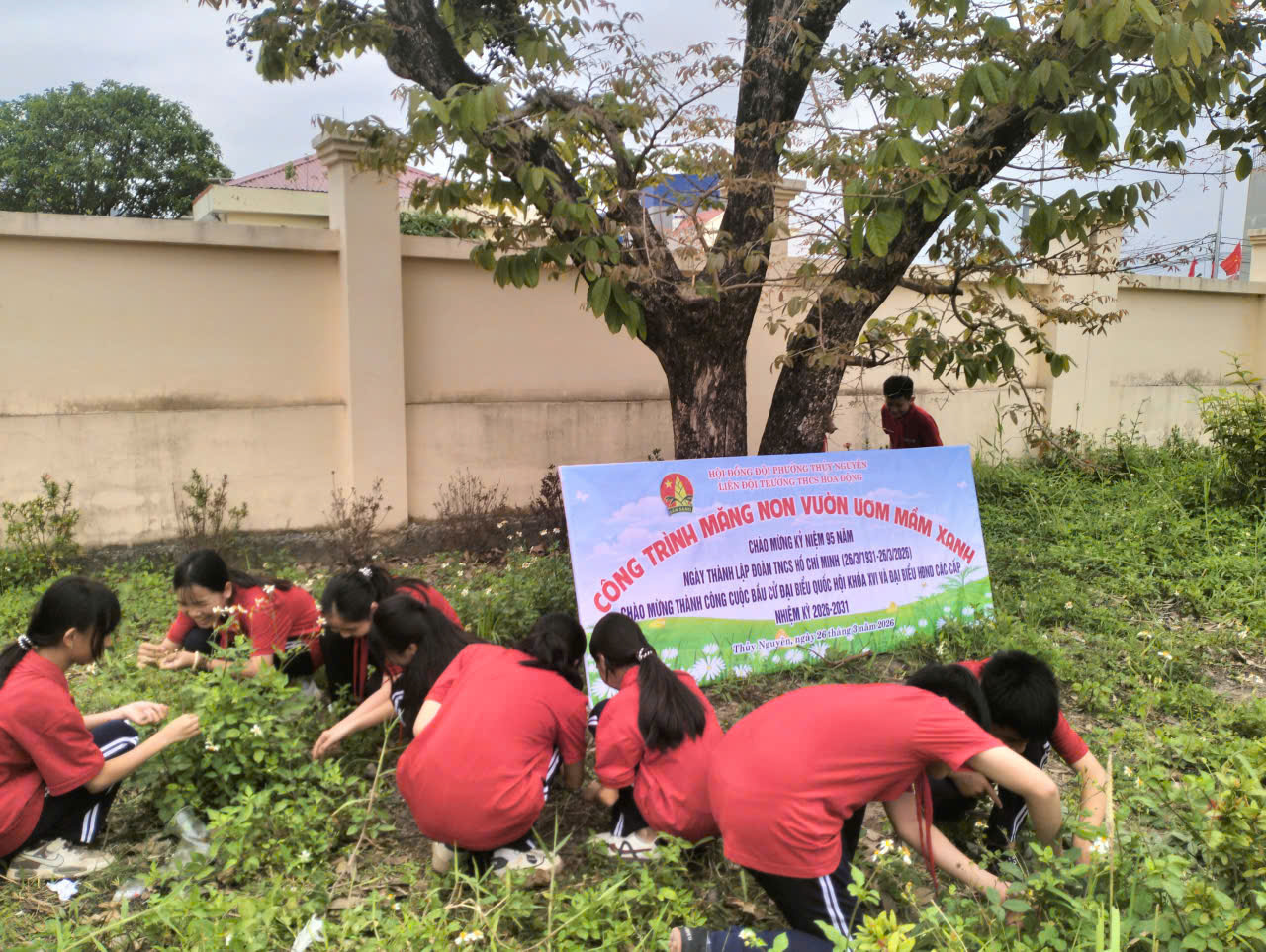 Hướng tới kỷ niệm 95 năm Ngày thành lập Đoàn TNCS Hồ Chí Minh (26/3/1931 – 26/3/2026), đồng thời chào mừng thành công cuộc bầu cử đại biểu Quốc hội và HĐND các cấp, ngày 26/3/2026, Liên đội Trường THCS Hòa Động đã tổ chức thực hiện công trình măng non “Vườn ươm mầm xanh”.