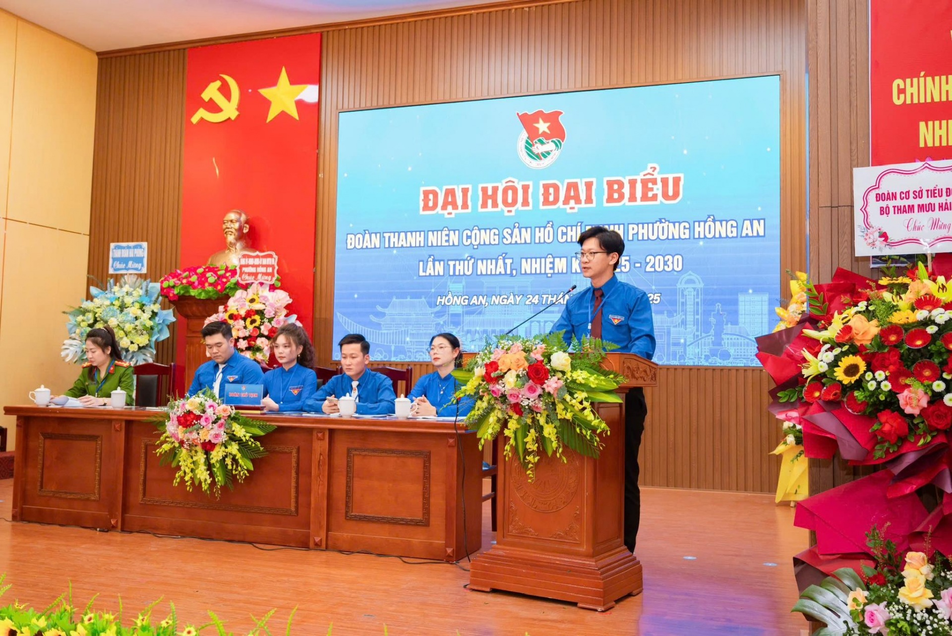 Tại Đại hội, các đại biểu đã: Thảo luận, đóng góp ý kiến vào Báo cáo chính trị và Báo cáo kiểm điểm của BCH lâm thời giai đoạn 2022–2025; Nghe ý kiến chỉ đạo của Ban Thường vụ Thành đoàn Hải Phòng và Bí thư Đảng ủy phường Hồng An, thể hiện niềm tin và kỳ vọng đối với tổ chức Đoàn trong nhiệm kỳ mới. Thảo luận sôi nổi qua các tham luận tiêu biểu như “Thanh niên nói không với ma túy, vì một thế hệ khỏe mạnh, văn minh” và “Xây dựng chi đoàn vững mạnh – hạt nhân của xã hội chủ nghĩa trong thời kỳ mới”; Đại hội đã nghe công bố các Quyết định của Ban Thường vụ Thành đoàn Hải Phòng chỉ định Ban Chấp hành Đoàn TNCS Hồ Chí Minh phường Hồng An khóa I, nhiệm kỳ 2025–2030 gồm 27 đồng chí, trong đó Ban Thường vụ gồm 09 đồng chí, Bí thư Đoàn phường là đồng chí Trần Hải Bình; Đại hội cũng chỉ định 03 đại biểu chính thức và 01 đại biểu dự khuyết đi dự Đại hội Đoàn TNCS Hồ Chí Minh thành phố Hải Phòng lần thứ I.