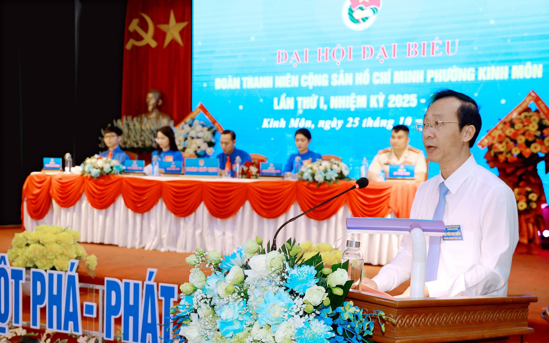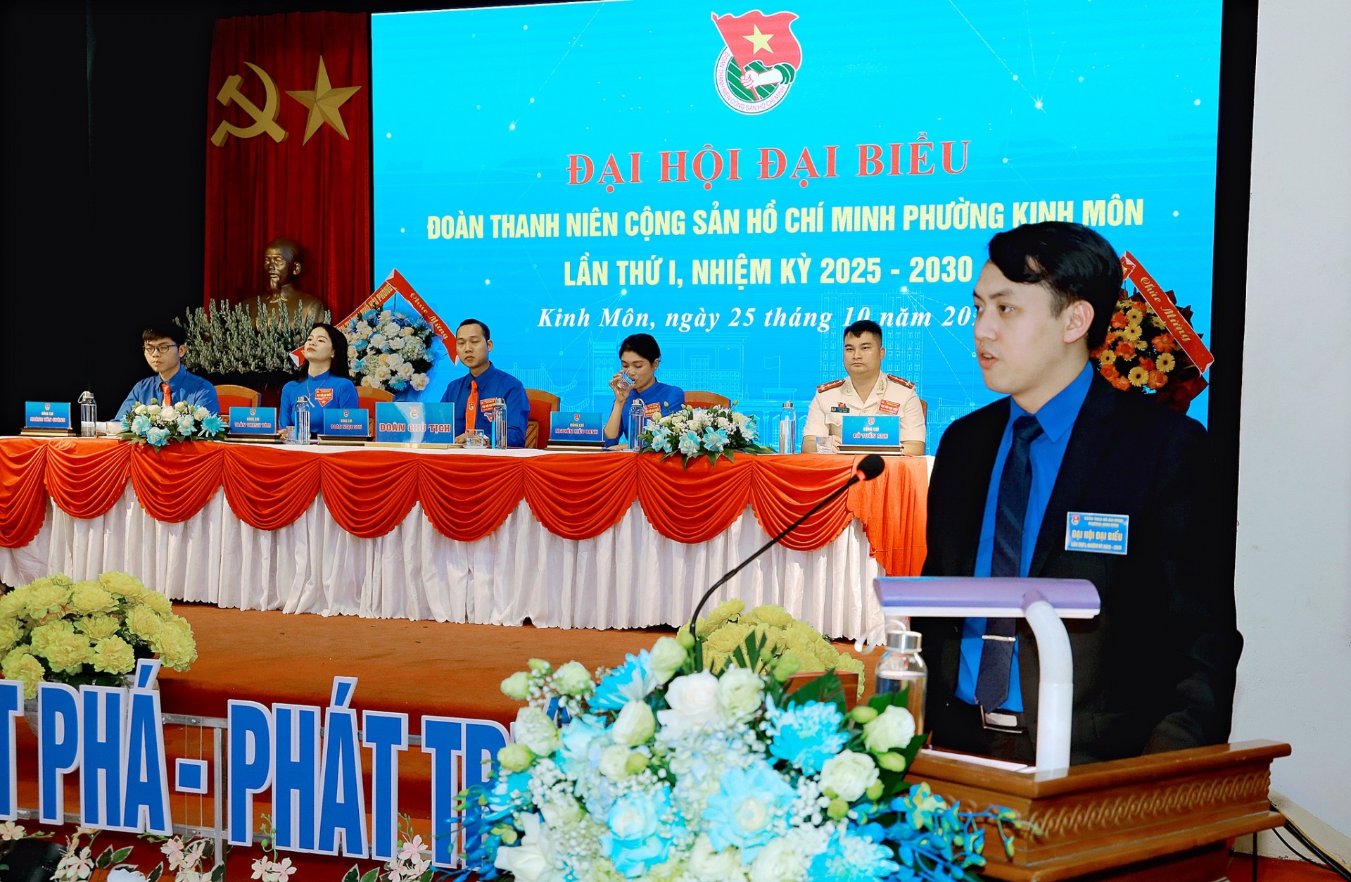 Phát biểu chỉ đạo tại Đại hội, đồng chí Nguyễn Tiến Mạnh, Phó bí thư thành Đoàn Hải Phòng, Đồng chí Vũ Hồng Hải, Phó Bí thư thường trực Đảng uỷ, chủ tịch HĐND phường, biểu dương những kết quả nổi bật của tuổi trẻ phường Kinh Môn trong nhiệm kỳ qua, đồng thời đề nghị Đoàn phường tiếp tục đẩy mạnh giáo dục lý tưởng cách mạng, nâng cao năng lực số, phát huy tinh thần sáng tạo, xung kích của thanh niên trong tham gia phát triển kinh tế - xã hội, Quan tâm chăm lo, hỗ trợ thanh niên trong học tập, nghề nghiệp, việc làm; phát hiện, bồi dưỡng, giới thiệu đoàn viên ưu tú cho Đảng xem xét kết nạp, tăng cường công tác xây dựng tổ chức Đoàn vững mạnh, phát huy vai trò nòng cốt trong công tác thanh niên, phối hợp chặt chẽ với các ban, ngành, đoàn thể để thực hiện thắng lợi các nhiệm vụ chính trị của địa phương.