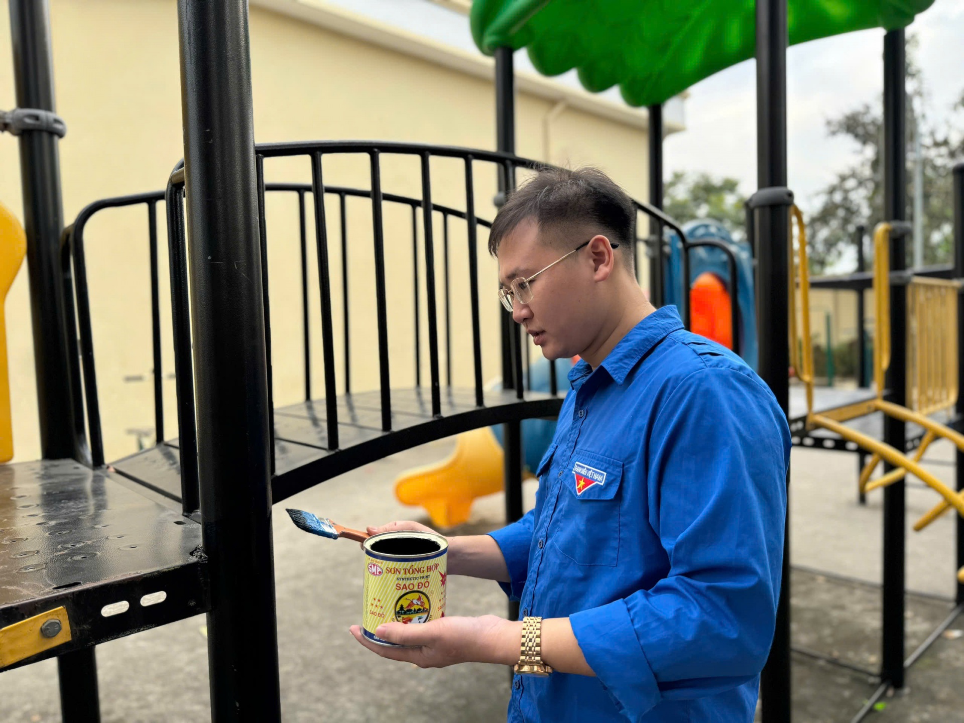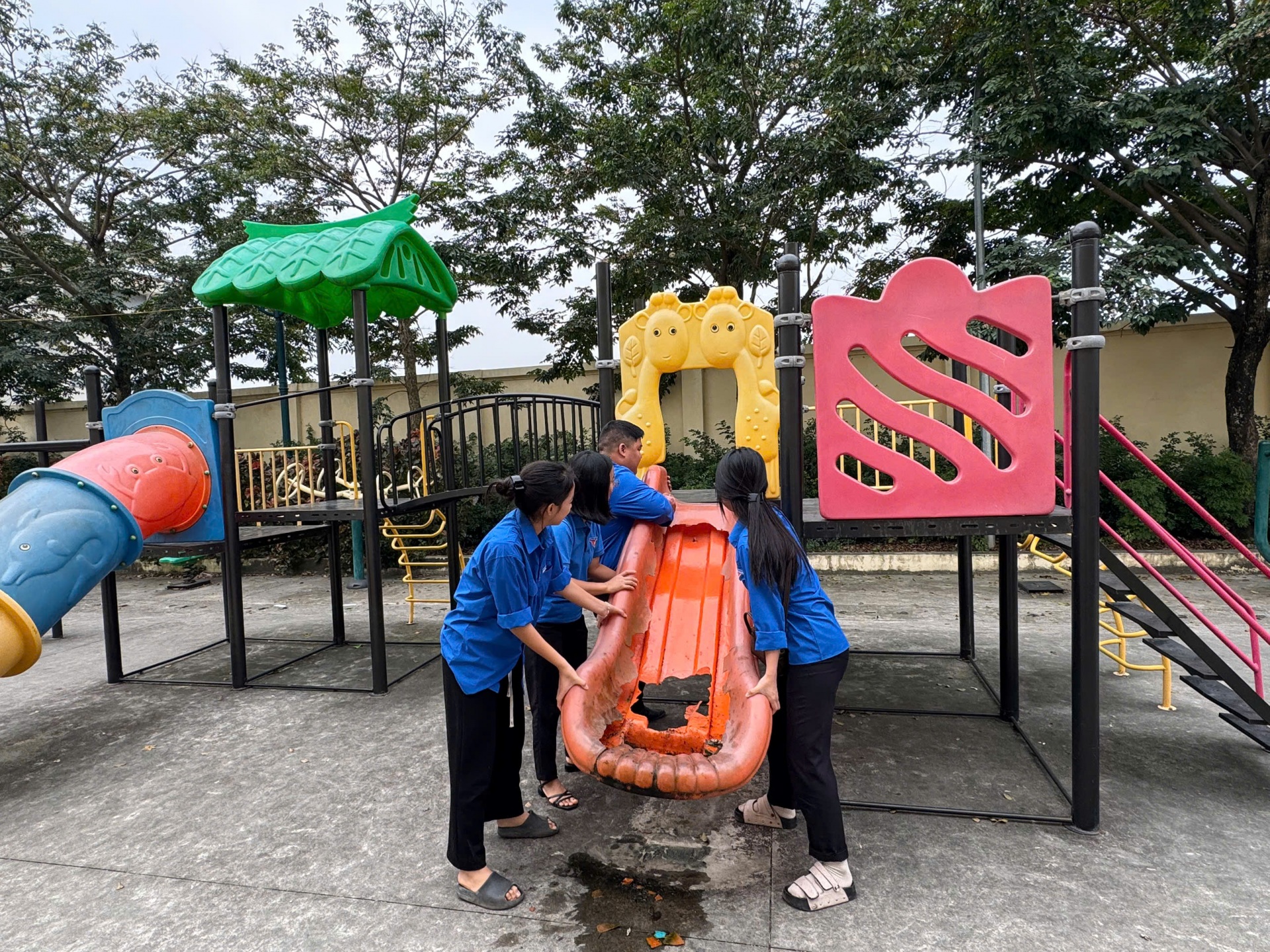 • Sửa chữa, làm mới các thiết bị vui chơi: Khắc phục tình trạng hư hỏng, sơn sửa mới các cầu trượt, xích đu, bập bênh đã xuống cấp.