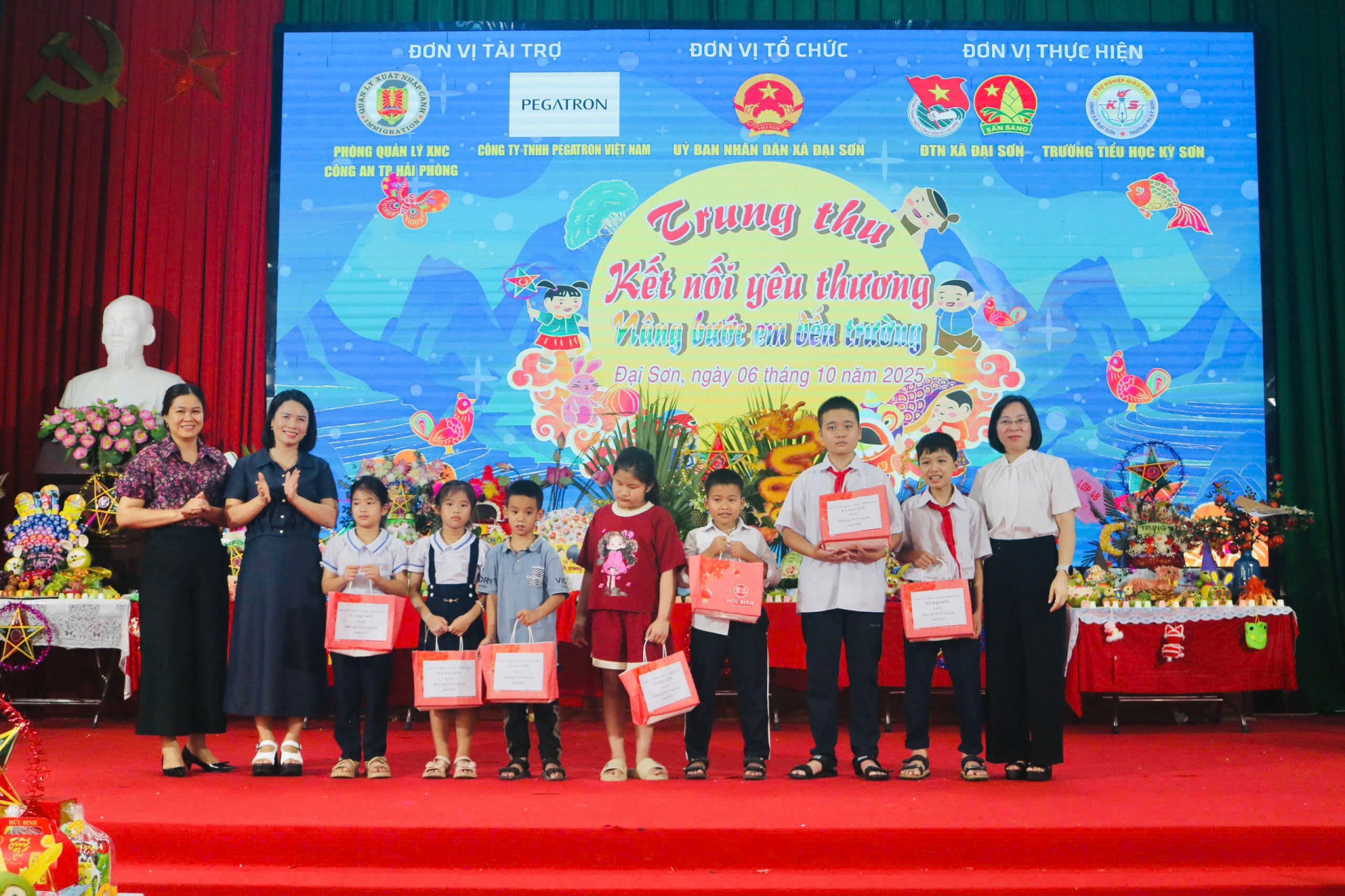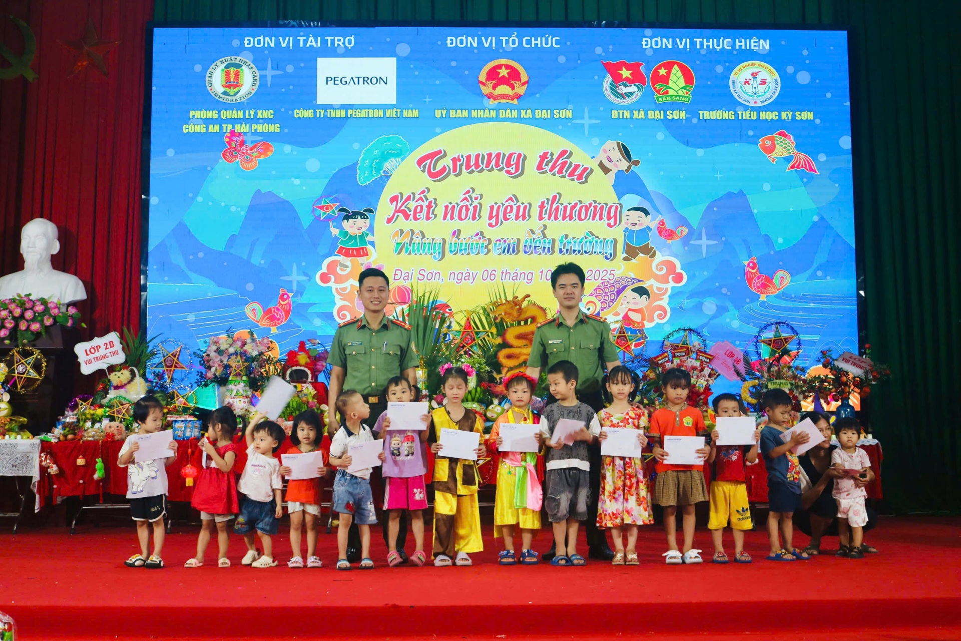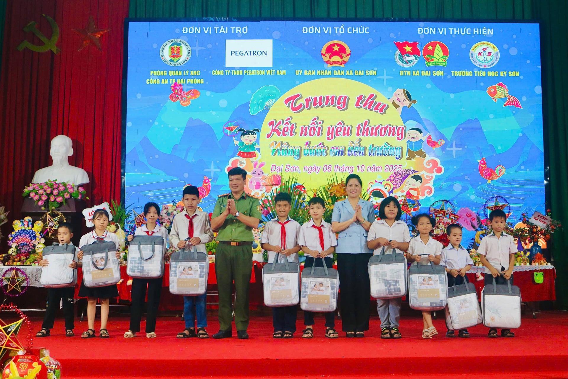 Trong chương trình, Phòng Quản lý Xuất nhập cảnh – Công an thành phố Hải Phòng và UBND xã Đại Sơn đã trao gần 50 suất quà ý nghĩa cho các em thiếu nhi có hoàn cảnh khó khăn. Những món quà tuy nhỏ nhưng chứa đựng tình cảm, sự sẻ chia và lời động viên giúp các em thêm nghị lực vươn lên trong học tập và cuộc sống.