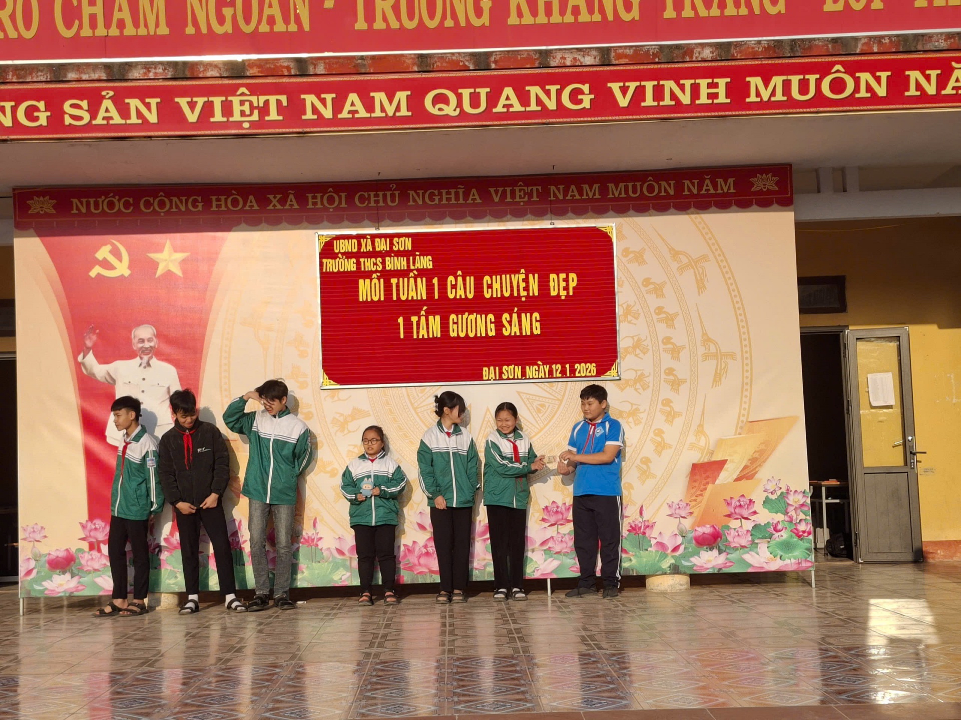 ĐAI SƠN: TRƯỜNG THCS BÌNH LÃNG DUY TRÌ HIỆU QUẢ HOẠT ĐỘNG “MỖI TUẦN MỘT CÂU CHUYỆN ĐẸP, MỘT TẤM GƯƠNG SÁNG”