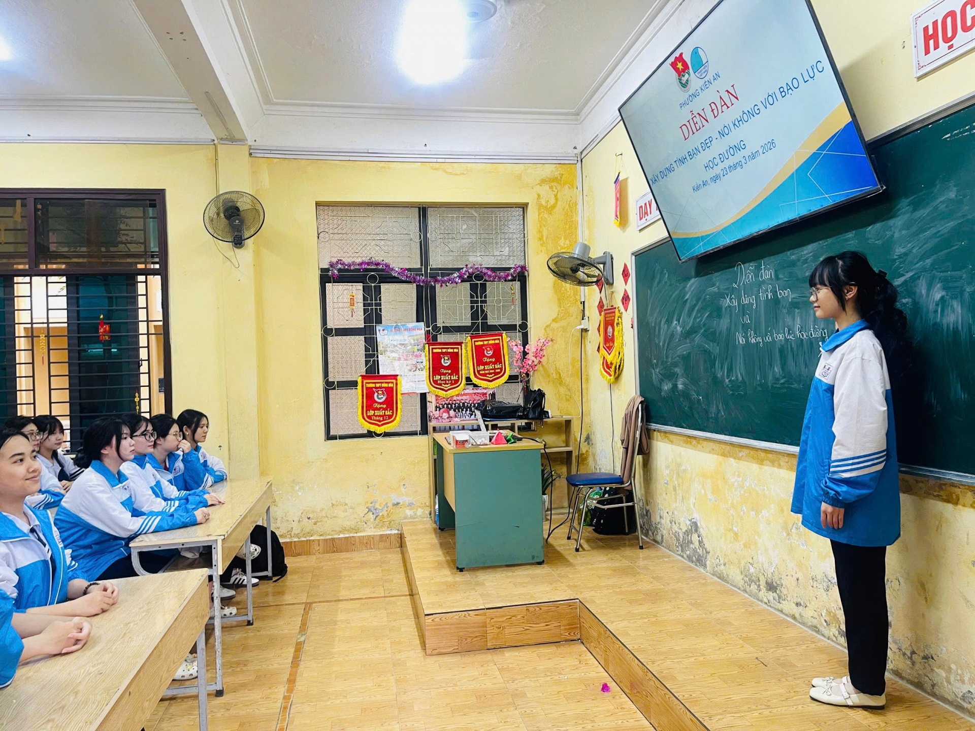 Ngày 23/3, nhằm nâng cao nhận thức và xây dựng môi trường học đường an toàn, lành mạnh, Đoàn Thanh niên phường Kiến An An chỉ đạo Đoàn trường THPT Đồng Hòa đã tổ chức Diễn đàn “Xây dựng tình bạn đẹp – Nói không với bạo lực học đường” với sự tham gia đông đảo của đoàn viên, học sinh.