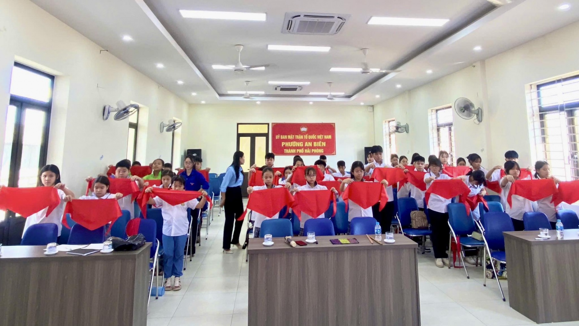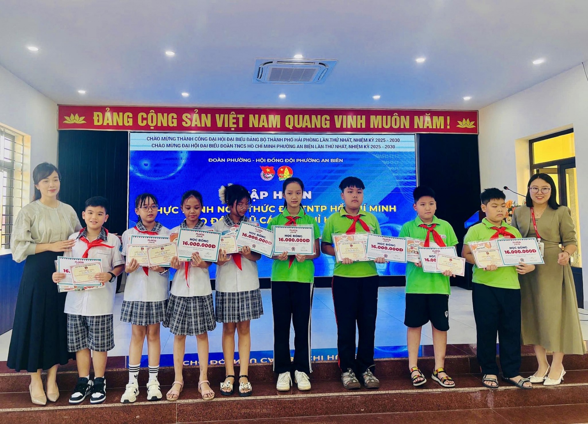 Kết thúc chương trình, Đoàn phường An Biên trao giấy chứng nhận hoàn thành chương trình tập huấn cho 40 chỉ huy Đội, biểu dương 08 cán bộ chỉ huy Đội tiêu biểu đã thể hiện tinh thần học tập nghiêm túc, kỹ năng nổi bật trong quá trình tập huấn. Đoàn phường phối hợp cùng Trung tâm Anh ngữ Ielts Fighter và Ms Hoa Junior Hải Phòng trao tặng các chương trình học tập, hỗ trợ nâng cao năng lực ngoại ngữ cho thanh thiếu nhi. Đây là hoạt động thiết thực nhằm đồng hành, tiếp sức cho các em trên hành trình học tập, hội nhập và phát triển toàn diện.
