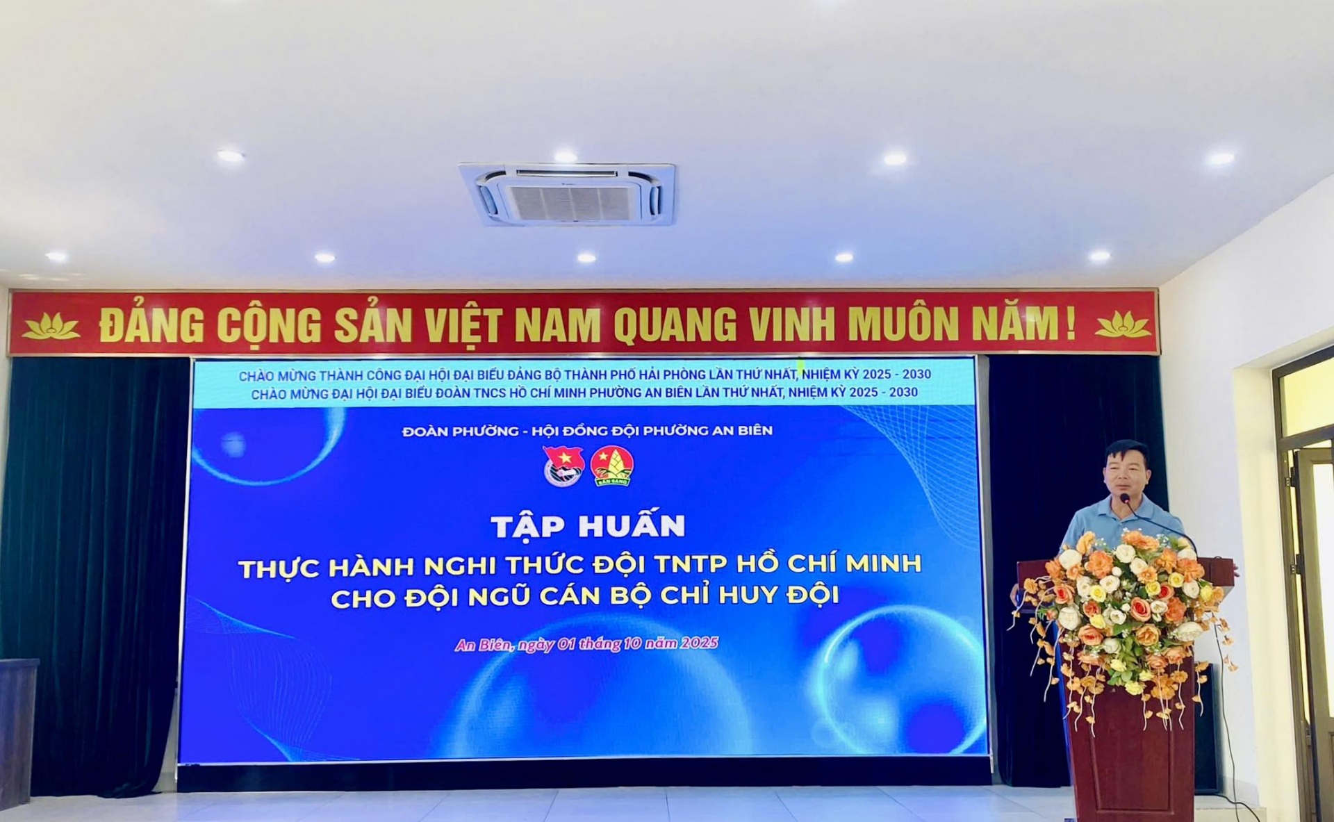 Ngày 01/10/2025, Đoàn phường - Hội đồng Đội phường An Biên tổ chức chương trình "Tập huấn nghi thức Đội TNTP Hồ Chí Minh dành cho đội ngũ cán bộ chỉ huy Đội" với sự tham gia hướng dẫn của đồng chí Tạ Hữu Tiến - Huấn luyện viên cấp I Trung ương, Giáo viên Tổng phụ Đội trường THCS Nguyễn Bá Ngọc.