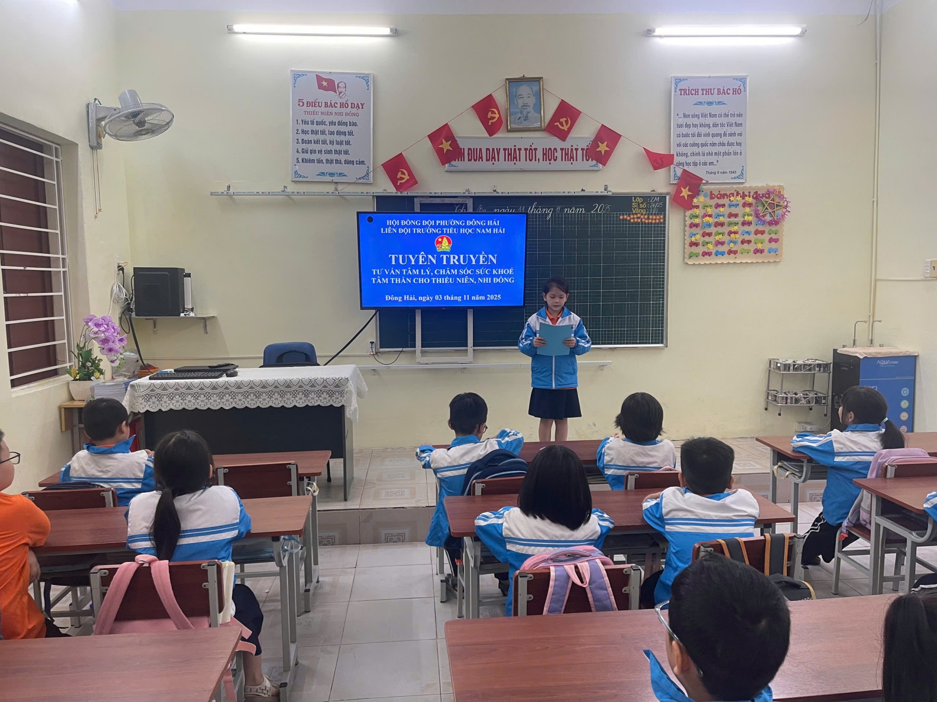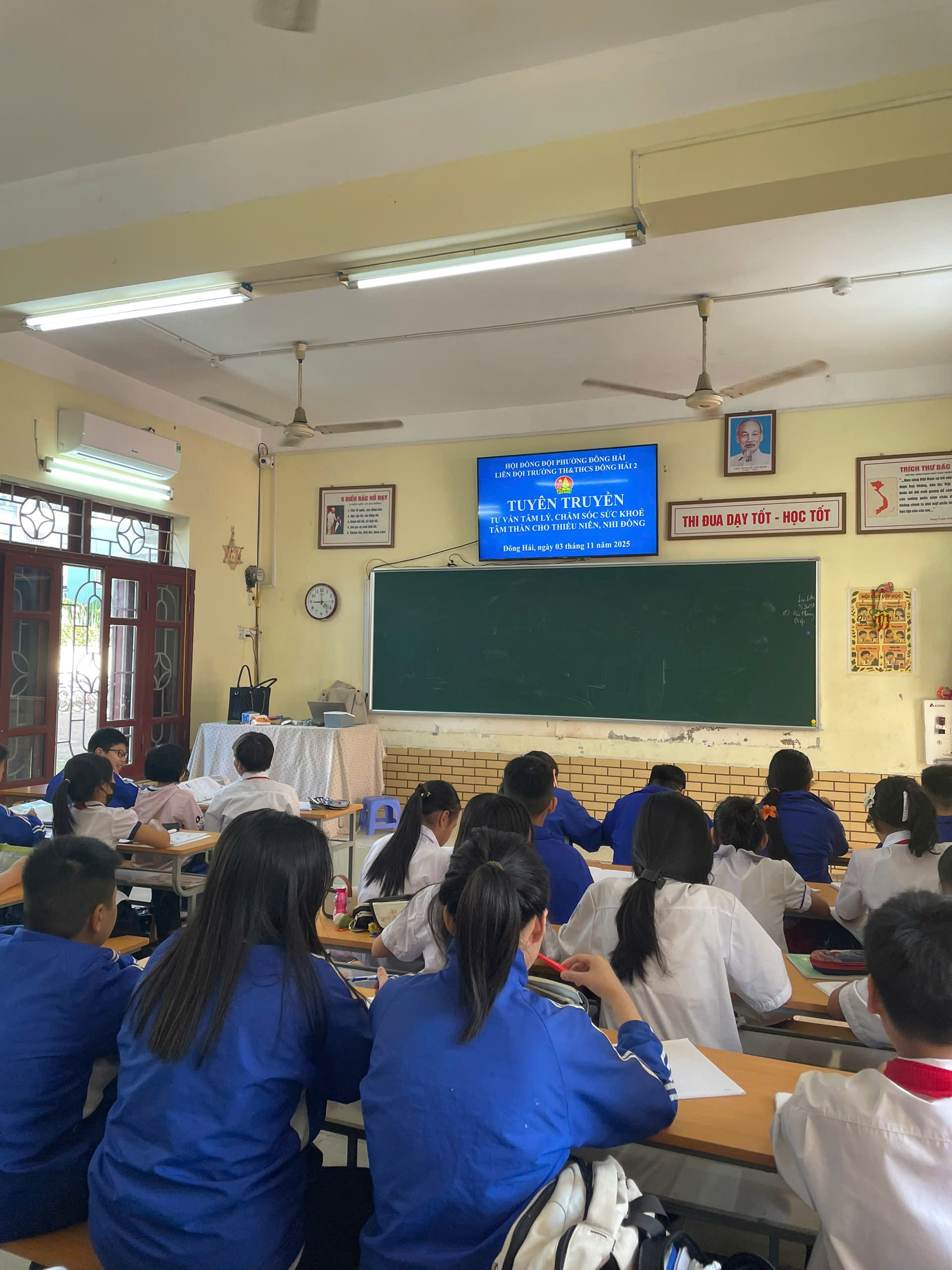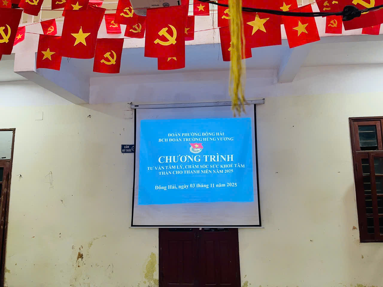 Thực hiện Chương trình Công tác Đoàn, Hội và phong trào thanh thiếu nhi năm 2025, Chương trình Công tác Đoàn, Đội và phong trào thanh thiếu nhi năm học 2025 - 2026, Đoàn phường - Hội LHTN Việt Nam - Hội đồng Đội phường Đông Hải chỉ đạo các cơ sở trực thuộc đồng loạt triển khai mô hình "TƯ VẤN TÂM LÝ, CHĂM SÓC SỨC KHOẺ TÂM THẦN CHO THANH THIẾU NHI" tại đơn vị lồng ghép với các hoạt động phối hợp tổ chức tuyên truyền cho thanh thiếu nhi, tổ chức sinh hoạt chi đoàn, chi đội, tổ chức các hoạt động sân khấu hoá; đến nay, 100% các đơn vị Đoàn các trường THPT, Liên đội đã thực hiện và tổ chức tuyên truyền sâu rộng tới các chi đoàn, chi đội thu hút đông đảo đoàn viên, đội viên, thanh thiếu nhi tham gia. Đây là hoạt động thiết thực của tuổi trẻ phường góp phần nâng cao kĩ năng cho thanh thiếu nhi đặc biệt là đối tượng thanh thiếu nhi trường học. Dưới đây là 1 số hình ảnh: