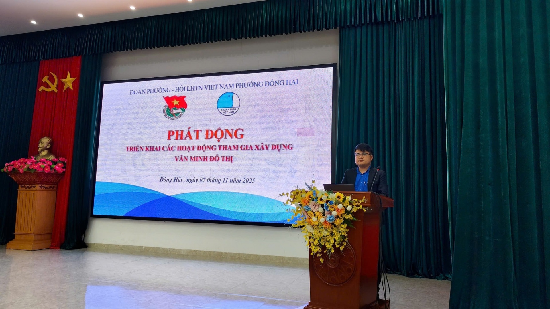 Thực hiện Chương trình công tác Đoàn, Hội và phong trào thanh niên năm 2025; chiều ngày 7/11/2025, Đoàn phường - Hội LHTN VN phường tổ chức phát động triển khai các hoạt động tham gia xây dựng văn minh đô thị, tiến hành quán triệt, giao nhiệm vụ cho các đơn vị, sáng 8/11/2025, Đoàn phường tổ chức ra quân, phối hợp cùng UBND phường, xí nghiệp môi trường đô thị Đông Hải, các đoàn thể phường thực hiện dọn dẹp vệ sinh, phát quang bụi rậm, xử lý rác thải tồn đọng tại khu vực Hồ điều hòa Phương Lưu, các cơ sở trực thuộc đồng loạt thực hiện "Ngày thứ bảy tình nguyện" dọn dẹp vệ sinh môi trường tại đơn vị. Dưới đây là 1 số hình ảnh: