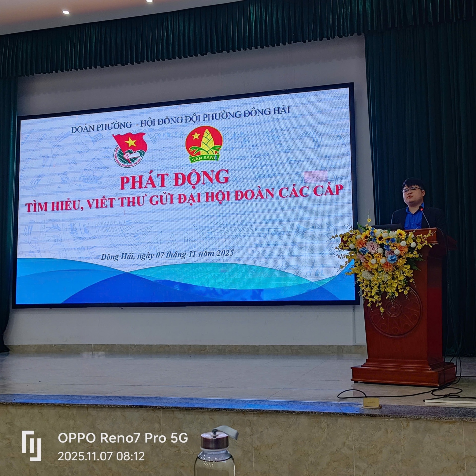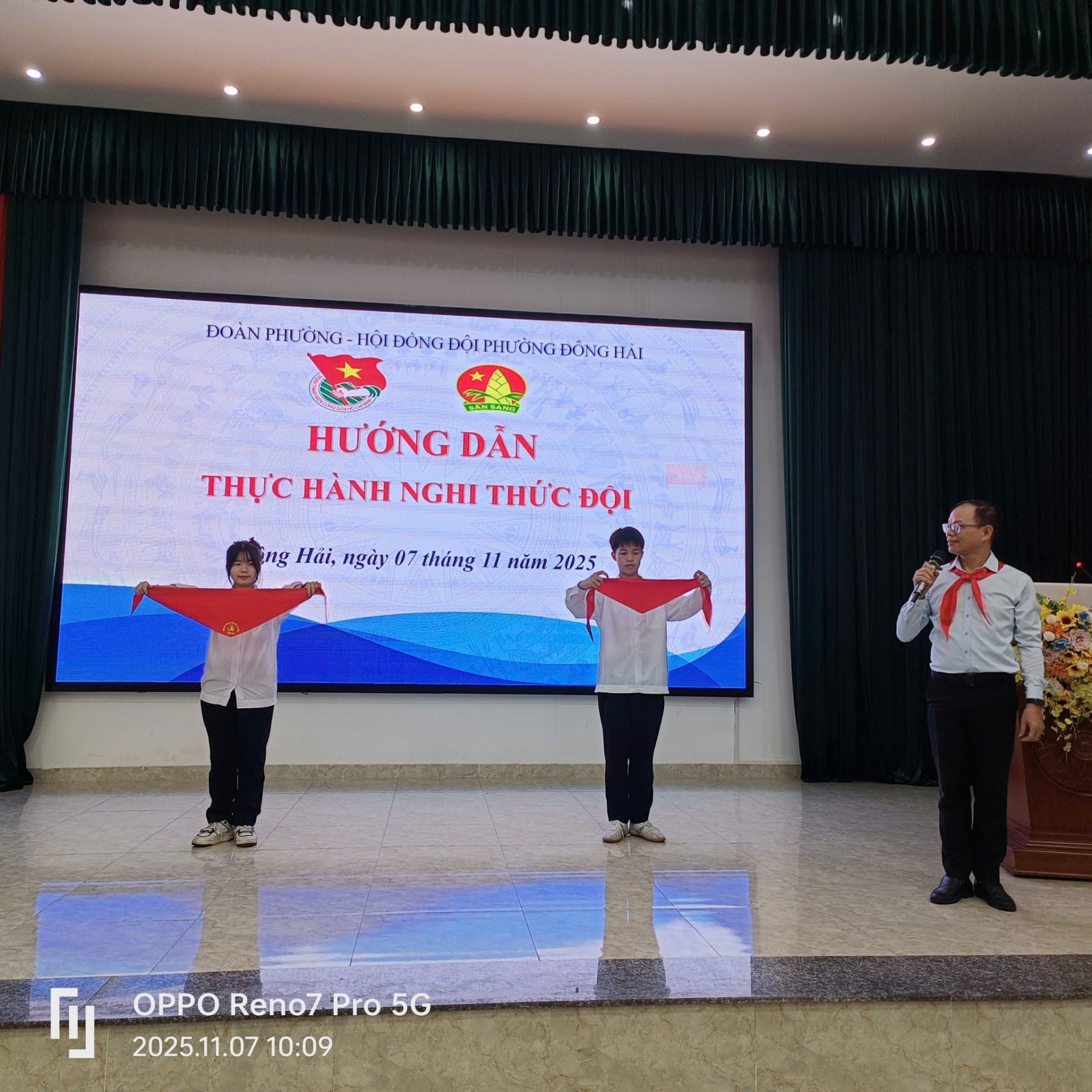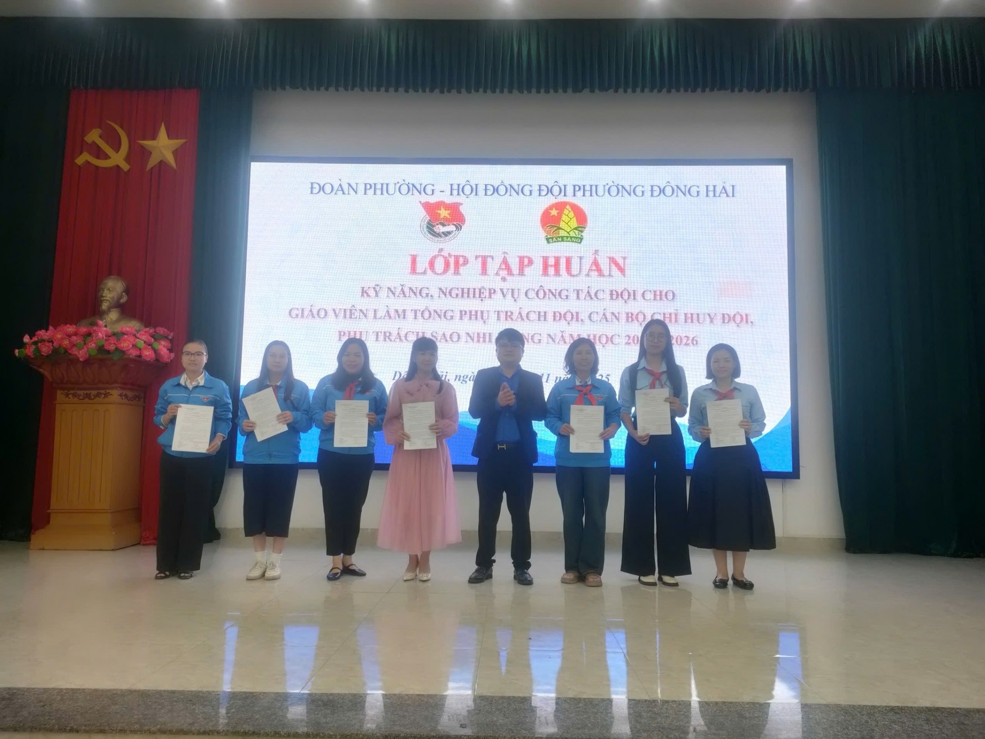 Thực hiện Chương trình công tác Đội và phong trào thiếu nhi năm học 2025 -2026, Kế hoạch số 09-KH/ĐTN ngày 30/10/2025 của BTV Đoàn phường về Tổ chức lớp tập huấn kỹ năng, nghiệp vụ công tác Đội cho Giáo viên làm Tổng phụ trách Đội, cán bộ chỉ huy Đội, phụ trách Sao Nhi đồng năm học 2025 - 2026; sáng ngày 7/11/2025; Ban Thường vụ Đoàn phường - Hội đồng Đội phường Đông Hải tổ chức lớp tập huấn kỹ năng, nghiệp vụ công tác Đội cho Giáo viên làm Tổng phụ trách Đội, cán bộ chỉ huy Đội, phụ trách Sao Nhi đồng năm học 2025 - 2026 với sự tham gia của 120 đại biểu. Tại lớp tập huấn, Ban Thường vụ Đoàn phường - Hội đồng Đội phường đã thông qua quyết định và ra mắt các mô hình: chăm sóc, giáo dục, bảo vệ trẻ em có hoàn cảnh đặc biệt; phát huy quyền tham gia của trẻ em tại cơ sở; phát động tìm hiểu, viết thư gửi Đại hội Đoàn các cấp; đồng chí Vũ Ngọc Quý - Huấn luyện viên quốc gia, Hội đồng Huấn luyện TW về công tác Đội, Nguyên Phó Giám đốc Trung tâm Huấn luyện cán bộ và dạy nghề thanh niên thành phố đã truyền đạt các chuyên đề: