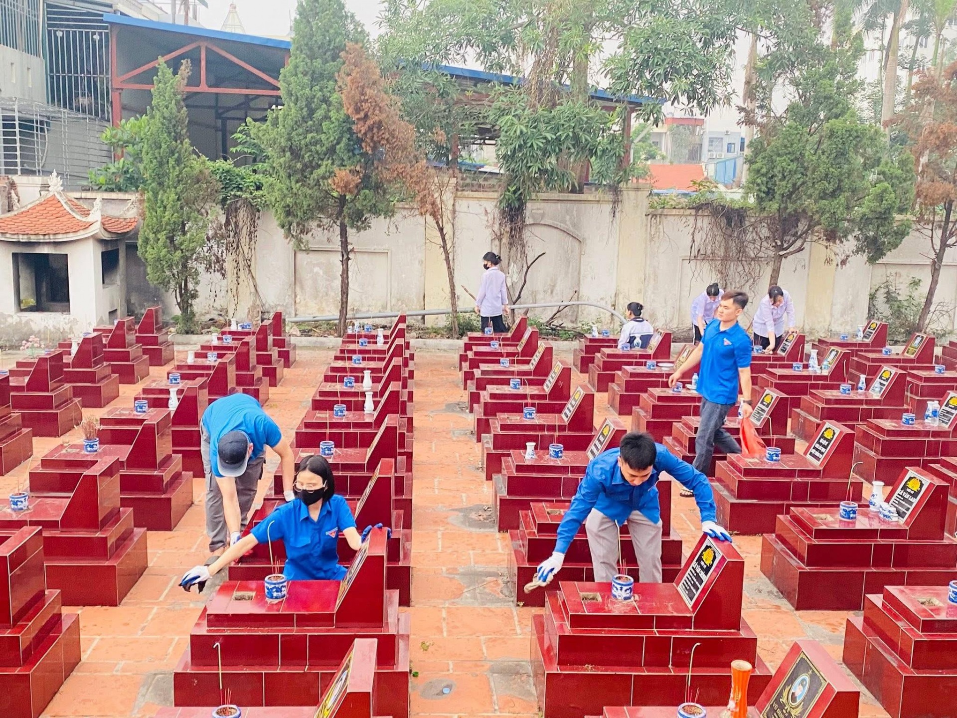 Lau dọn, thắp hương tưởng niệm các phần mộ anh hùng liệt sĩ.