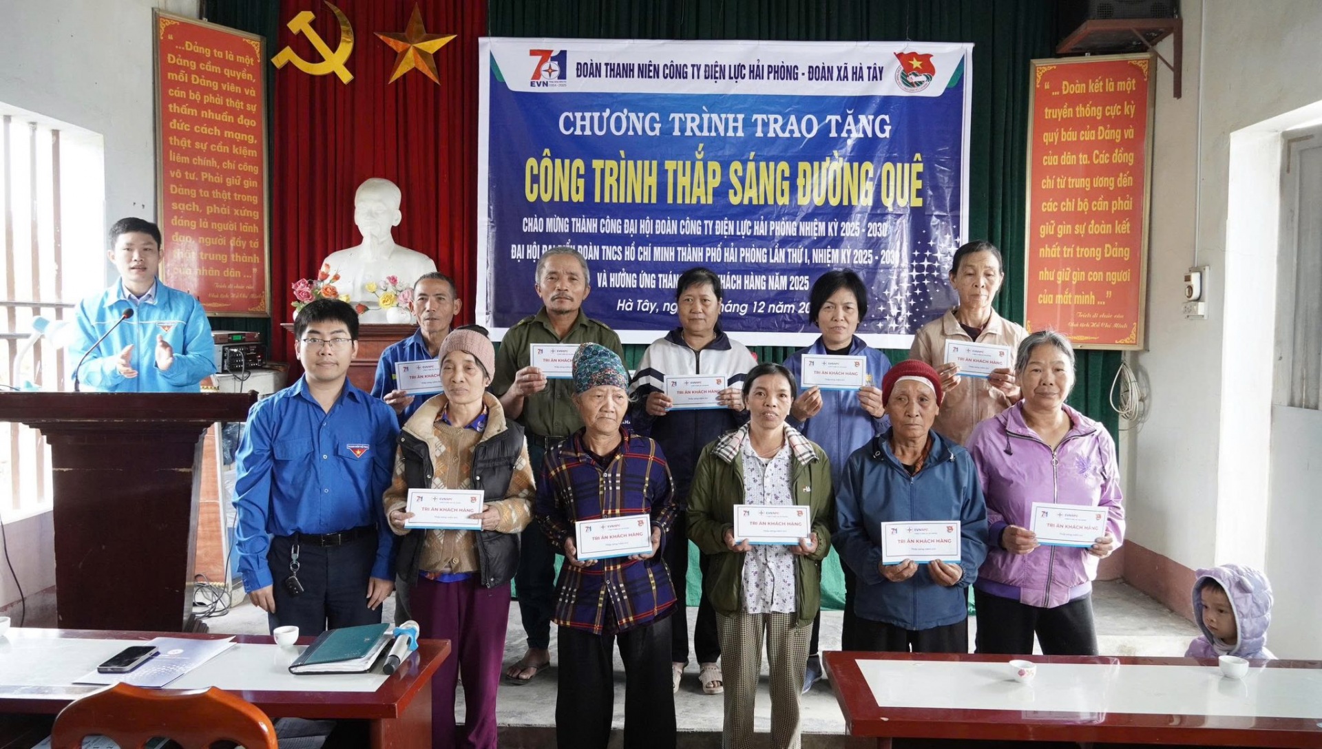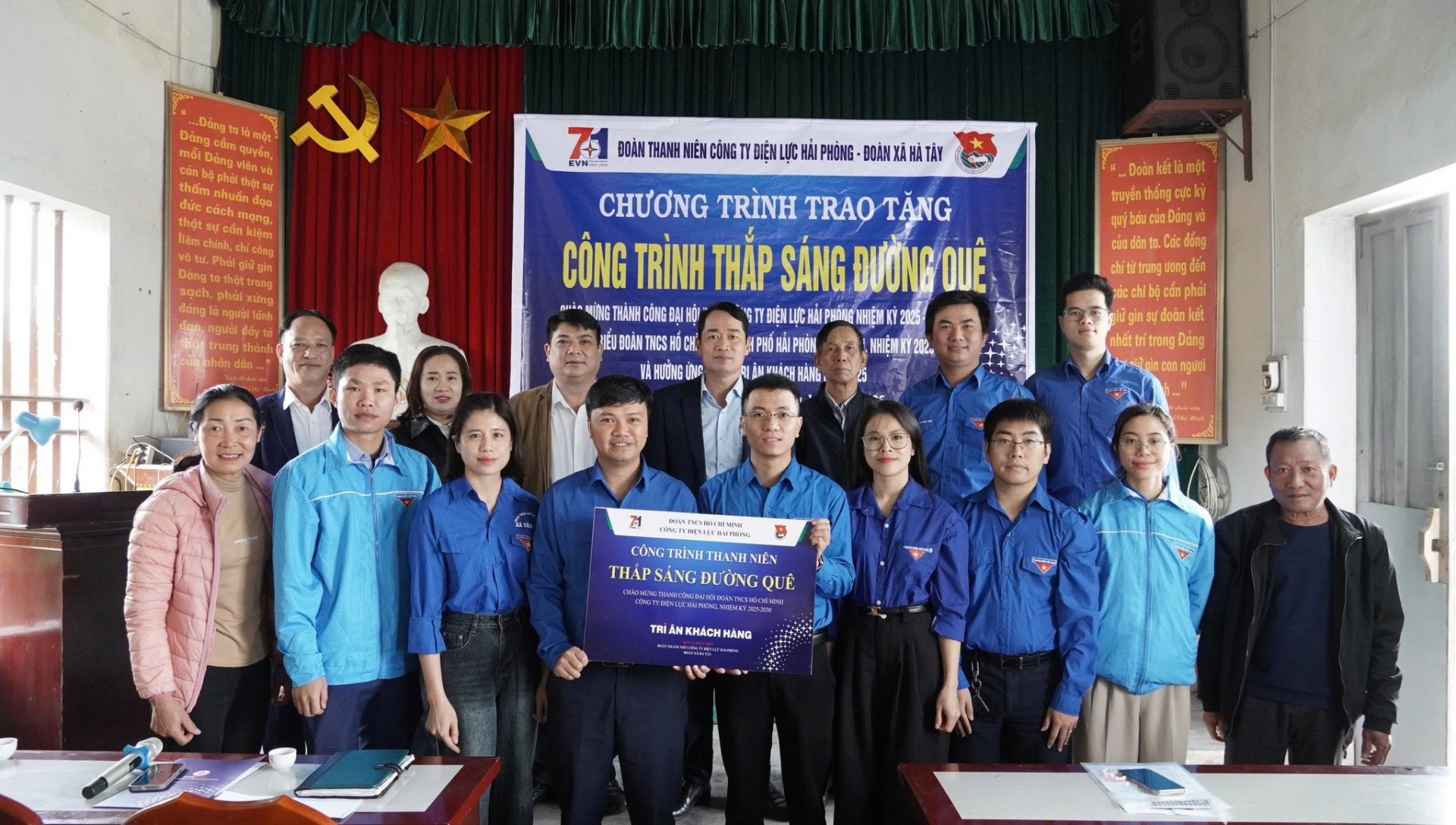Thiết thực chào mừng thành công Đại hội đại biểu Đoàn TNCS Hồ Chí Minh thành phố Hải Phòng lần thứ I, nhiệm kỳ 2025–2030, ngày 31/12/2025, Đoàn Thanh niên Công ty Điện lực Hải Phòng đã phối hợp với Đoàn Thanh niên xã Hà Tây tổ chức chương trình trao tặng công trình thanh niên “Thắp sáng đường quê” tại địa phương. Công trình được triển khai với tinh thần xung kích – trách nhiệm – vì cộng đồng, gồm các hạng mục: Kéo 1.000m cáp điện lắp đặt 26 bộ đèn chiếu sáng cao áp với tổng giá trị vật tư trên 60 triệu đồng.