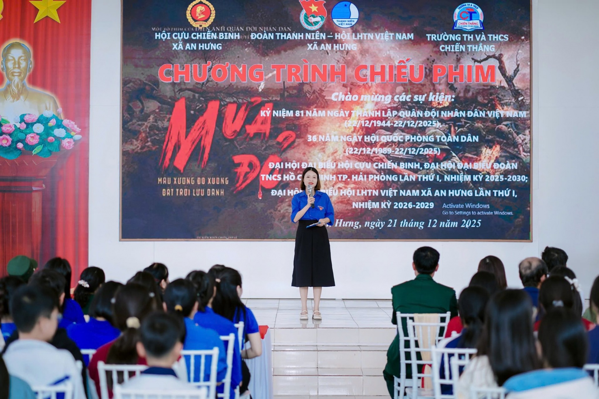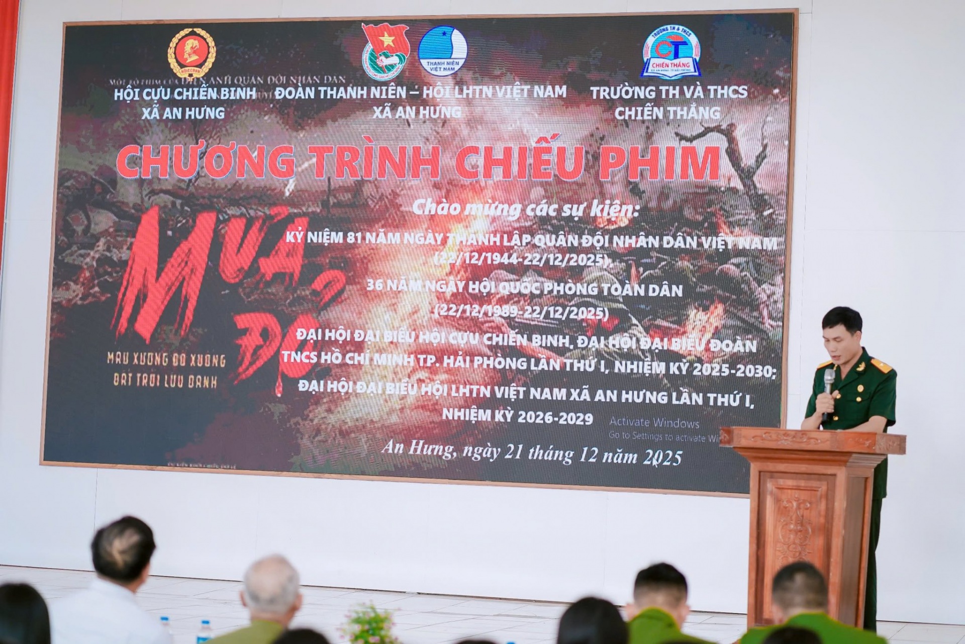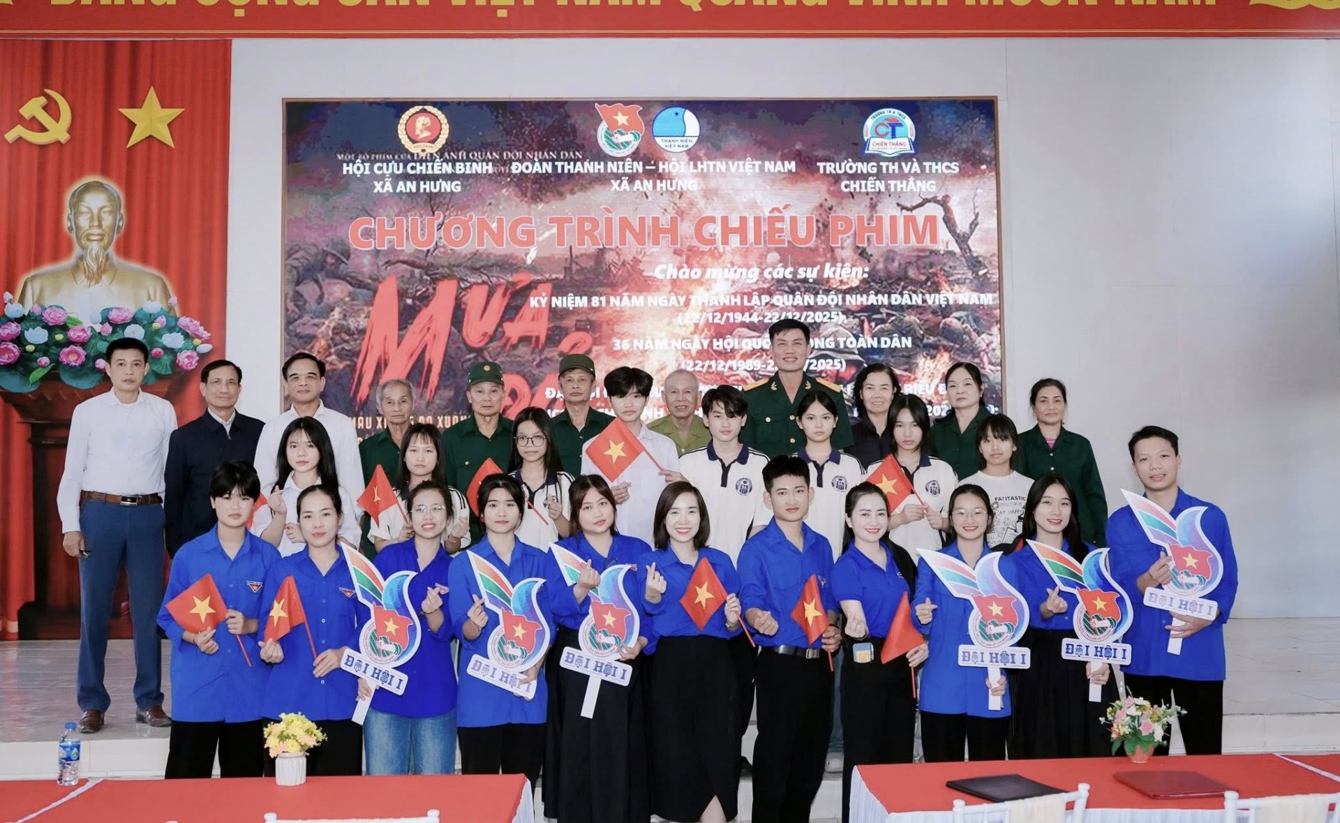 Nhân dịp kỷ niệm 81 năm ngày thành lập Quân đội nhân dân Việt Nam (22/12/1944 - 22/12/2025), 36 năm ngày Hội quốc phòng toàn dân (22/12/1989 - 22/12/2025), hướng tới Đại hội Đại biểu Hội cựu chiến binh và Đoàn TNCS Hồ Chí Minh thành phố Hải Phòng lần thứ I, nhiệm kỳ 2025-2030, Đại hội Đại biểu Hội LHTN Việt Nam xã An Hưng lần thứ I, nhiệm kỳ 2026-2029; ngày 21/12/2025, tại trường TH và THCS Chiến Thắng, Đoàn Thanh niên, Hội LHTN Việt Nam và Hội cựu chiến binh xã An Hưng phối hợp tổ chức buổi chiếu phim miễn phí “Mưa đỏ” cho các bác cựu chiến binh, cựu thanh niên xung phong, đoàn viên thanh niên, các em học sinh và bà con nhân dân trên địa bàn xã.