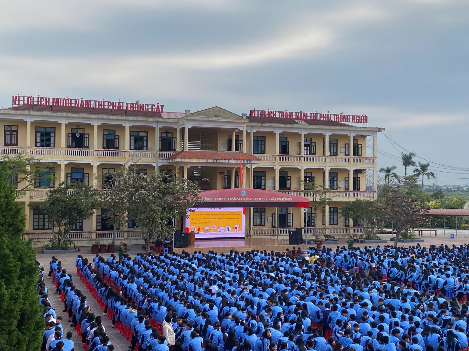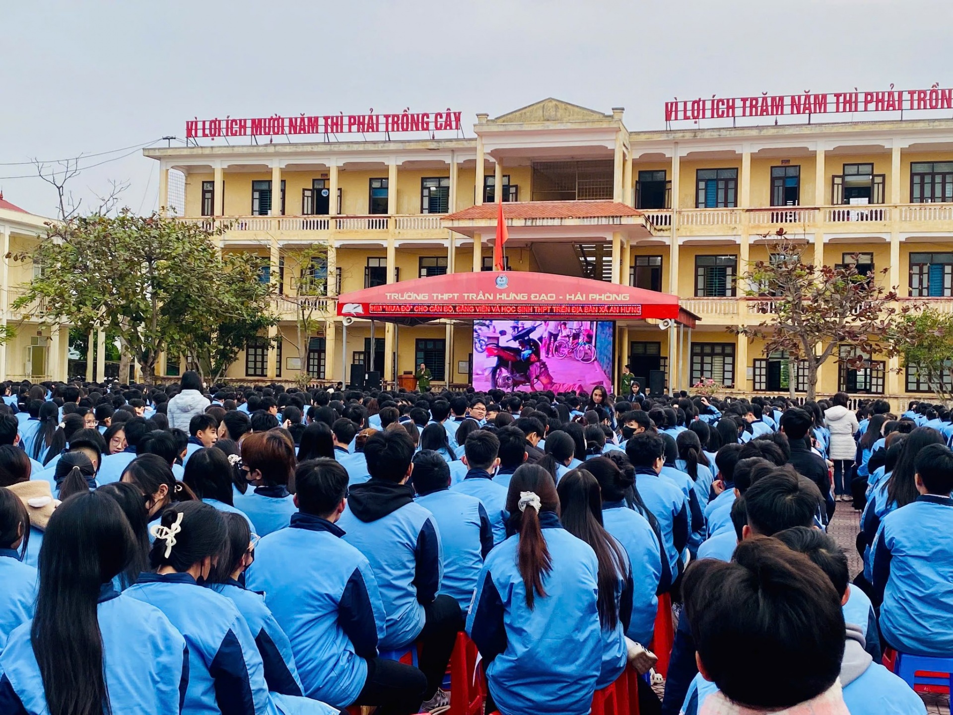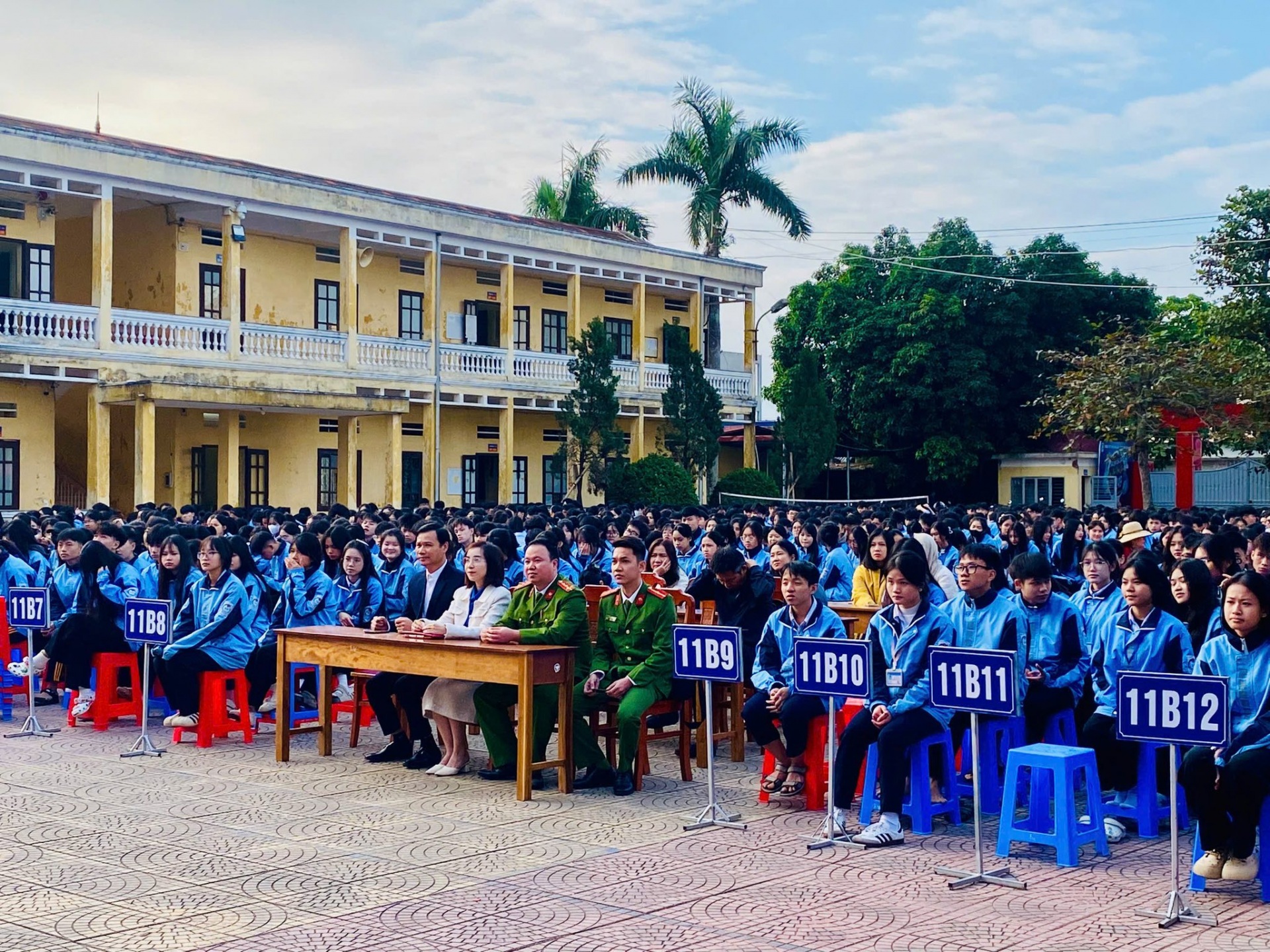 Tham dự chương trình có các đại biểu: Đ/c Nguyễn Xuân Thạch - Đảng ủy viên, Trưởng phòng Văn hóa - Xã hội; đ/c Đặng Thị Đài Trang - Đảng ủy viên, Phó Chủ tịch Ủy ban Mặt trận tổ quốc Việt Nam xã, Bí thư Đoàn thanh niên; thầy giáo Ngô Hồng Tân – Bí thư Đảng bộ, Hiệu trưởng nhà trường; các đồng chí báo cáo viên, cán bộ, chiến sỹ công an xã; các thầy cô trong Ban giám hiệu nhà trường, BTV Đoàn trường, các thầy cô chủ nhiệm lớp và hơn 1600 học sinh trường THPT Trần Hưng Đạo.