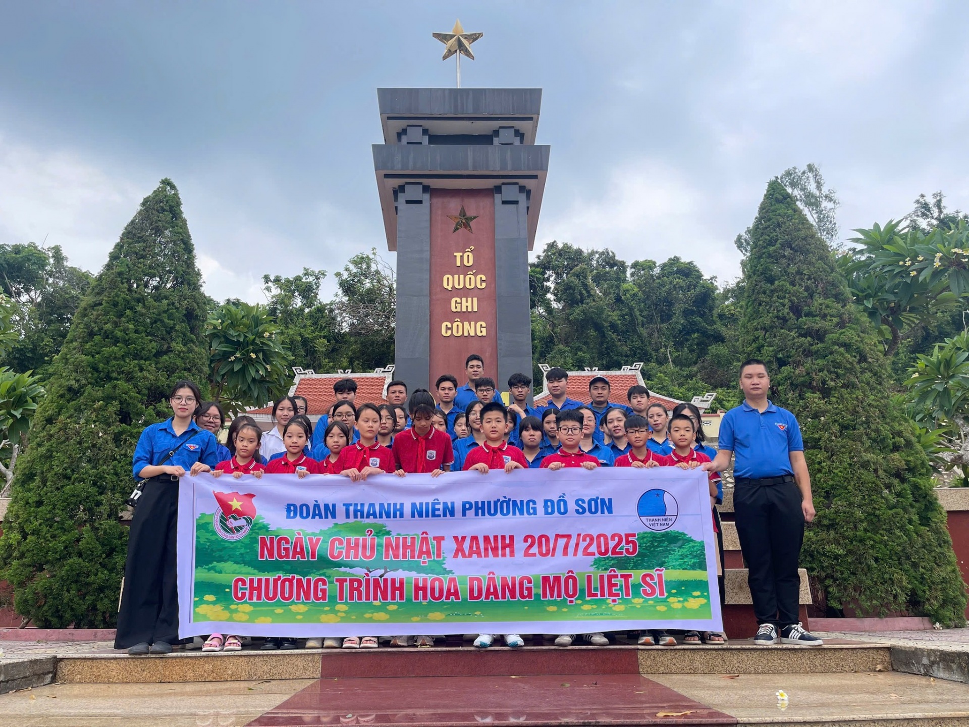 Sáng nay (20/7), Thực hiện chiến dịch Thanh niên tình nguyện hè, Đoàn Thanh niên phường Đồ Sơn tổ chức chương trình “Ngày Chủ nhật xanh – Hoa dâng mộ liệt sĩ” tại nghĩa trang liệt sĩ phường.
