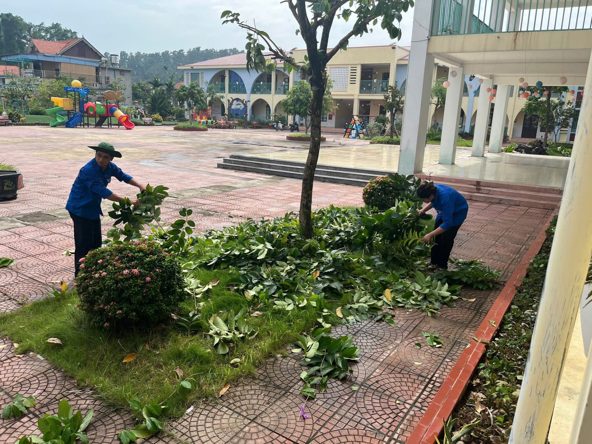 Đoàn Thanh niên Phường Lê Ích Mộc tổ chức ra quân "Ngày Chủ nhật xanh", tham gia dọn dẹp, tại khuôn viên nghĩa trang liệt sĩ phường và hỗ trợ chằng chống, gia cố, phát quang cây xanh tại Trường Mầm non Chính Mỹ – đảm bảo an toàn trước ảnh hưởng của cơn bão số 3.