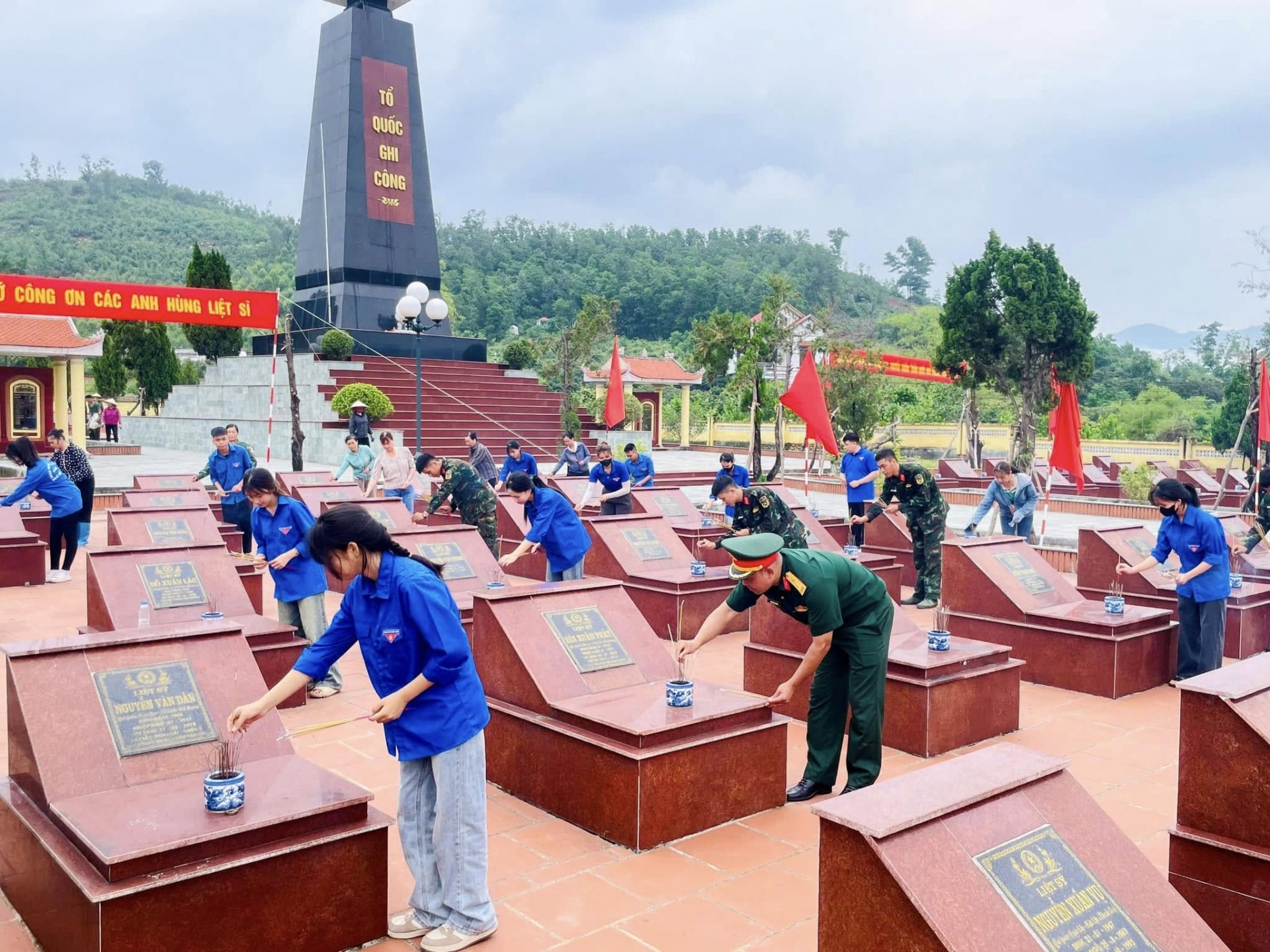 Ngay từ sáng sớm, đông đảo đoàn viên, thanh niên và lực lượng tình nguyện viên của phường đã phối hợp với các đồng chí thuộc Lữ đoàn pháo binh 454; Trung đoàn 2, Sư đoàn 395, và các tổ chức Hội đoàn thể (hội liên hiệp phụ nữ, hội nông dân, hội cựu chiến binh) trên địa bàn tích cực tham gia tổng dọn vệ sinh, chỉnh trang khuôn viên tại 3 Nghĩa trang Liệt sĩ phường, xã (phường Bến Tắm cũ, xã Bắc An cũ và xã Hoàng Hoa Thám cũ)