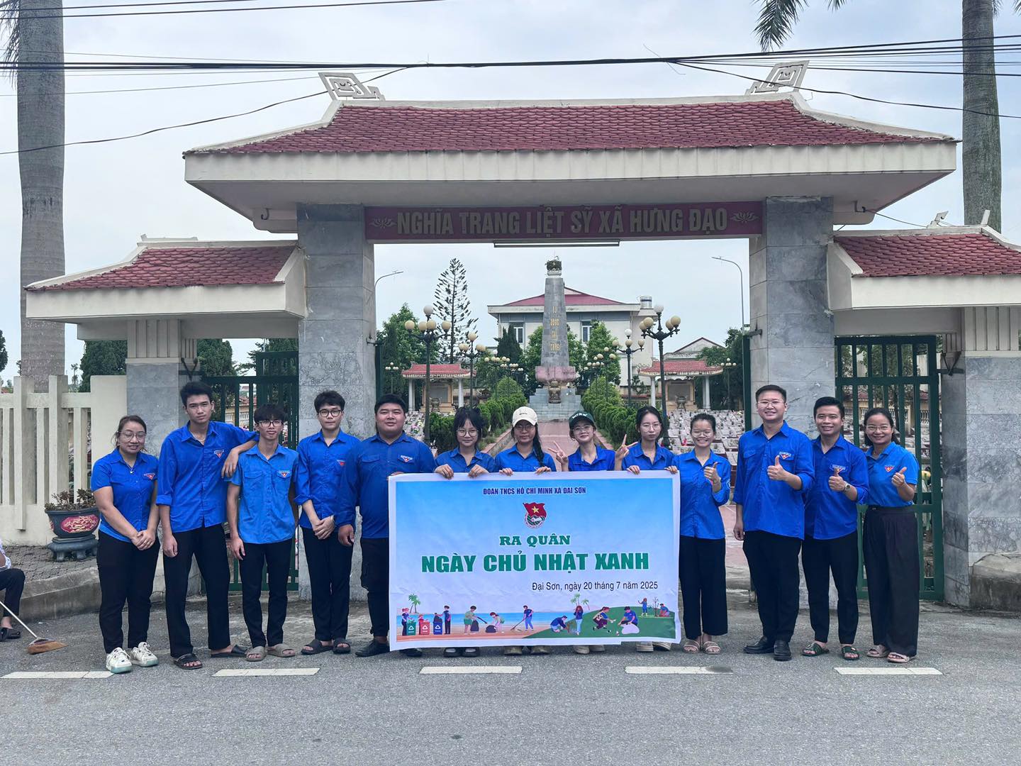 Hướng tới kỷ niệm 78 năm Ngày Thương binh - Liệt sĩ (27/7/1947 – 27/7/2025), Đoàn thanh niên xã Đại Sơn đã tổ chức ra quân dọn vệ sinh, chăm sóc các phần mộ liệt sĩ và tổng dọn vệ sinh môi trường tại khu vực nghĩa trang, khu tưởng niệm.