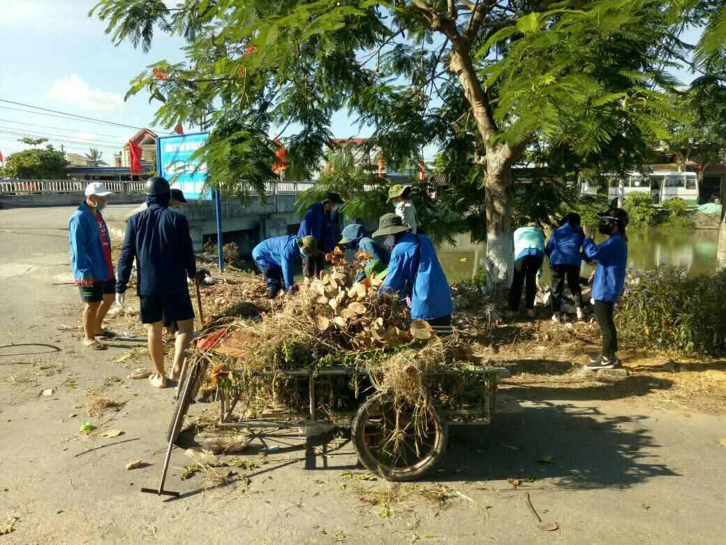 Đoàn thanh niên xã Nguyễn Bỉnh Khiêm ra quân chủ nhật xanh 21-9 hỗ trợ bà con làm sạch mương máng, ao, hồ và ven đường nơi bà con sinh hoạt