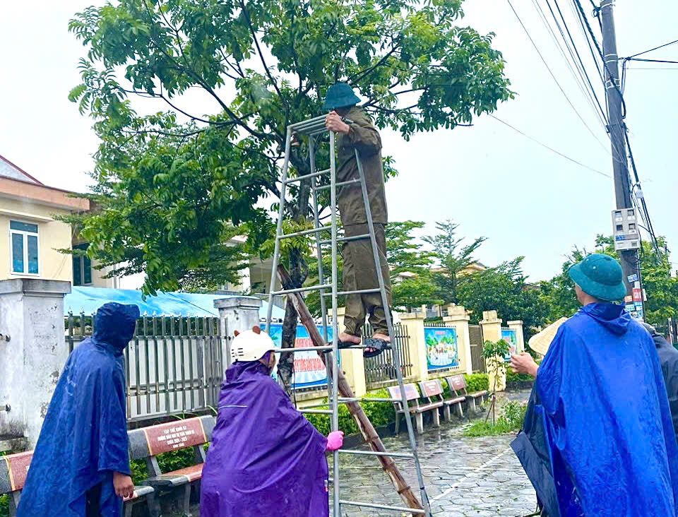 Các lực lượng đoàn viên thanh niên đã tích cực tham gia phát quang cây xanh trong khuôn viên nhà trường, nhằm phòng tránh nguy cơ cây gãy đổ gây thiệt hại đến hệ thống dây điện, trang thiết bị dạy học của nhà trường. Cùng với đó, các đoàn viên cũng tổ chức phát quang cỏ dại, khơi thông dòng chảy tại các khu vực bị ách tắc thoát nước kém, nhằm đảm bảo tiêu thoát kịp thời, hạn chế tối đa tình trạng ngập úng khi bão đổ bộ.