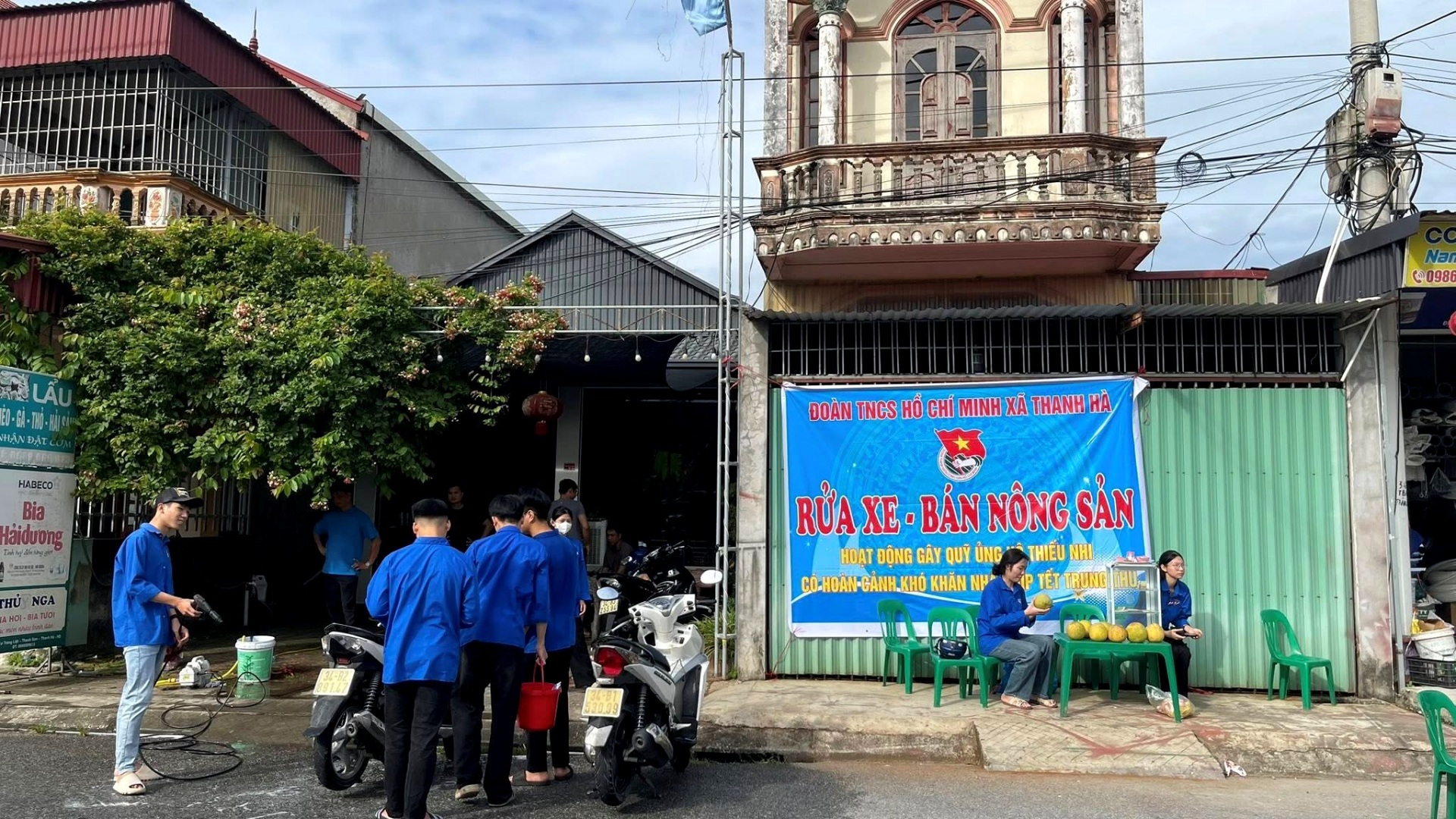 Đoàn thanh niên xã Thanh Hà tổ chức chương trình rửa xe và bán nông sản gây quỹ tặng quà cho trẻ em nghèo, có hoàn cảnh khó khăn