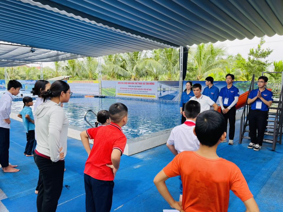 Lớp học bơi miễn phí được tổ chức tại bể bơi Tân Hưng với sự tham gia của 10 em nhỏ có hoàn cảnh khó khăn, đến từ các Trường Tiểu học và Trung học cơ sở trên địa bàn. Tại đây, các em được hướng dẫn các kỹ năng bơi lội cơ bản, kỹ thuật cứu hộ, cách xử lý tình huống nguy hiểm dưới nước, góp phần trang bị kiến thức an toàn cho các em trong mùa hè.
