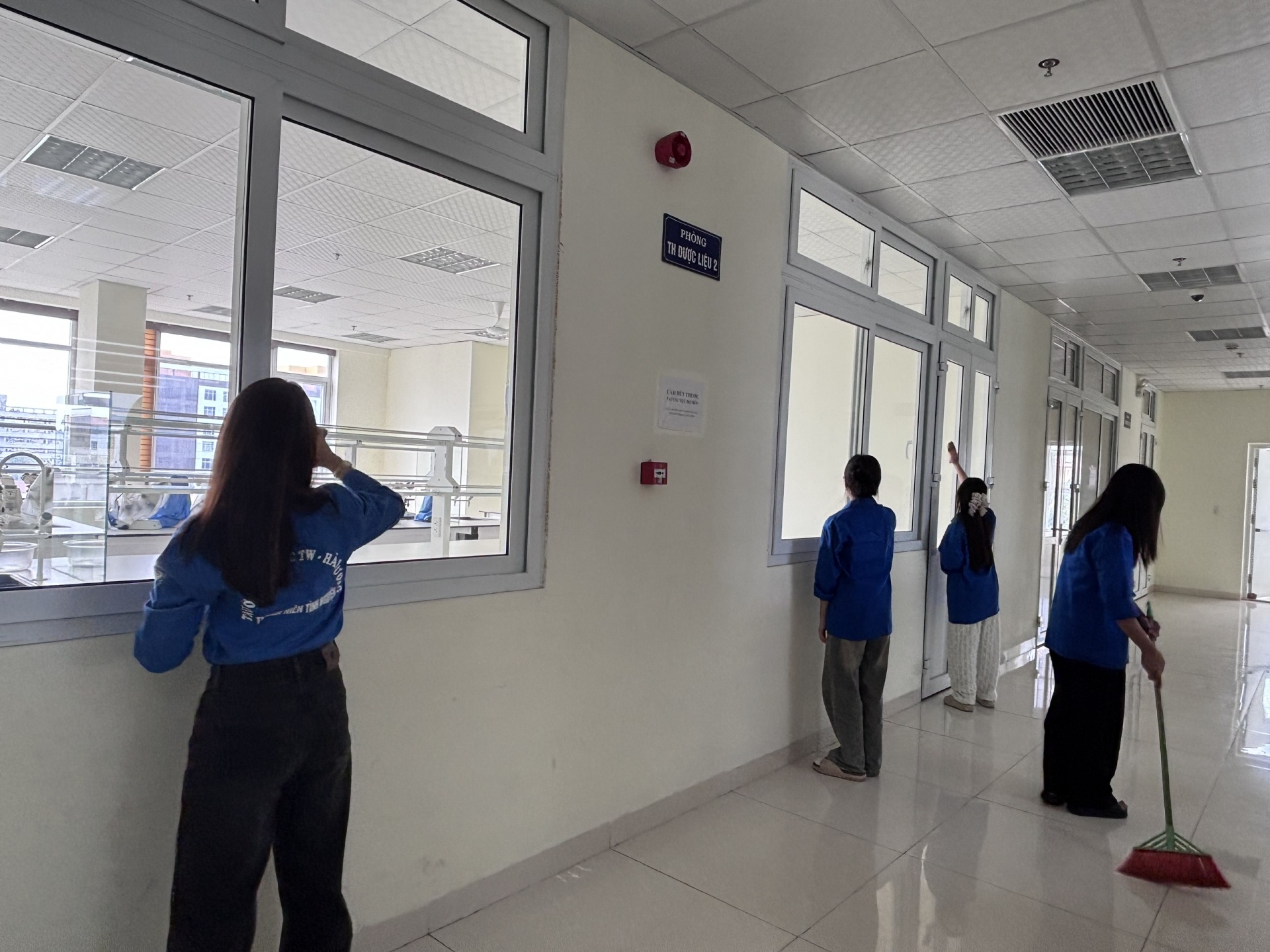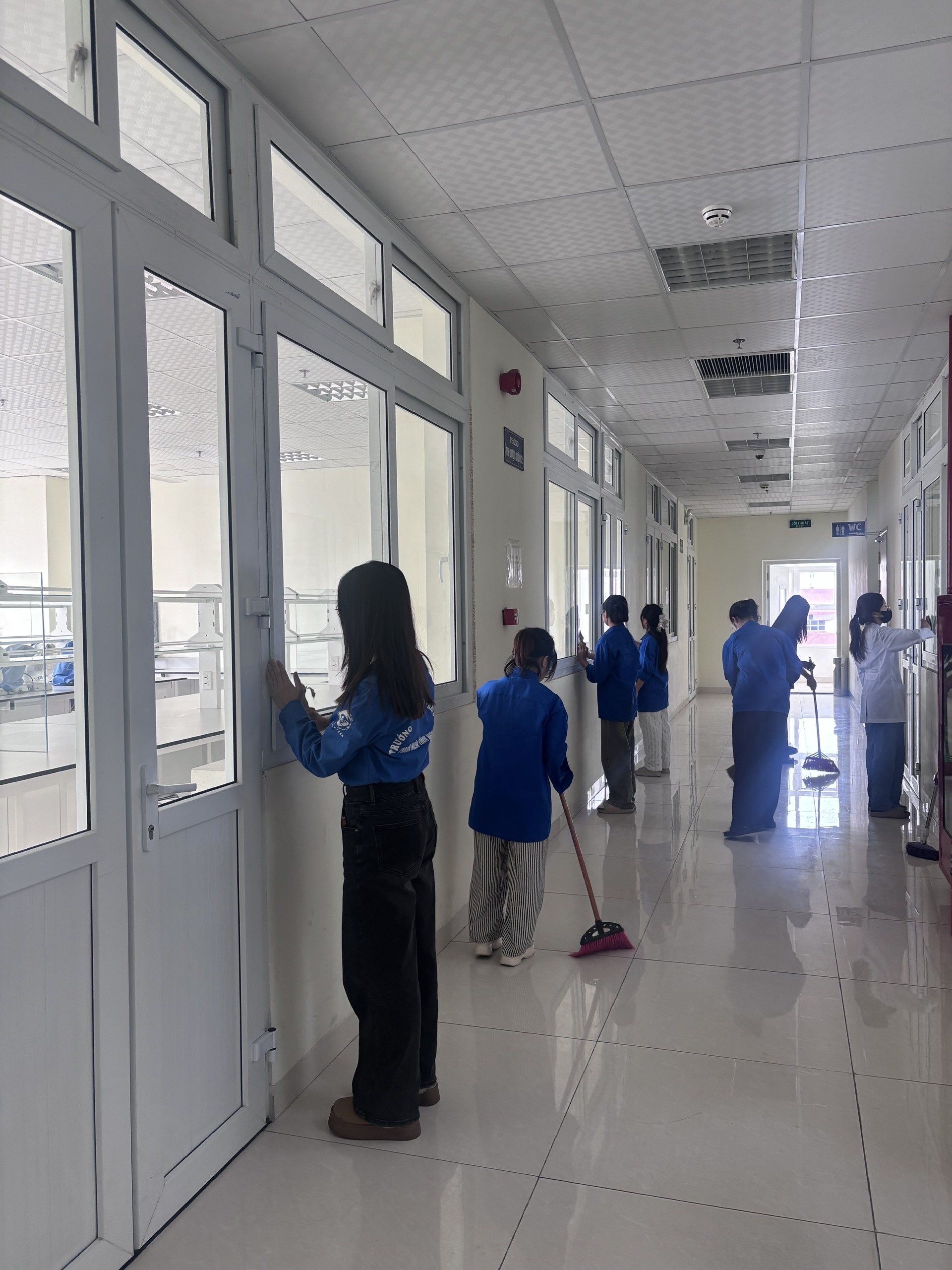 Tại Chương trình, Đoàn viên, sinh viên tiến hành quét dọn sân trường, vệ sinh phòng học – hành lang – khu thực hành; thu gom rác thải, phát quang bụi rậm xung quanh trường. Các bồn cây của nhà trường cũng được chăm sóc, bổ sung cây mới nhằm tạo cảnh quan xanh – sạch – đẹp.
