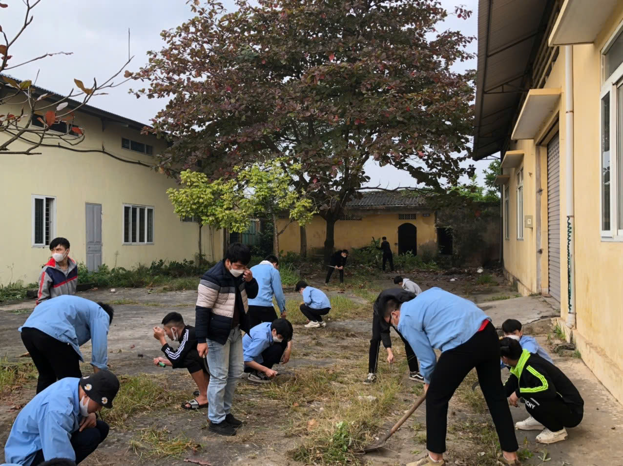 Ngay từ đầu giờ sáng, các đội hình thanh niên đã có mặt đầy đủ, khẩn trương triển khai các phần việc như tổng vệ sinh khuôn viên trường, thu gom rác thải tại các khu vực tập trung đông sinh viên, vệ sinh hành lang lớp học, khu xưởng thực hành và chăm sóc cây xanh trong khuôn viên ký túc xá. Không chỉ dừng ở hoạt động làm sạch, Đoàn trường còn lồng ghép tuyên truyền về xây dựng thói quen sống xanh, phân loại rác và gìn giữ cảnh quan học đường.