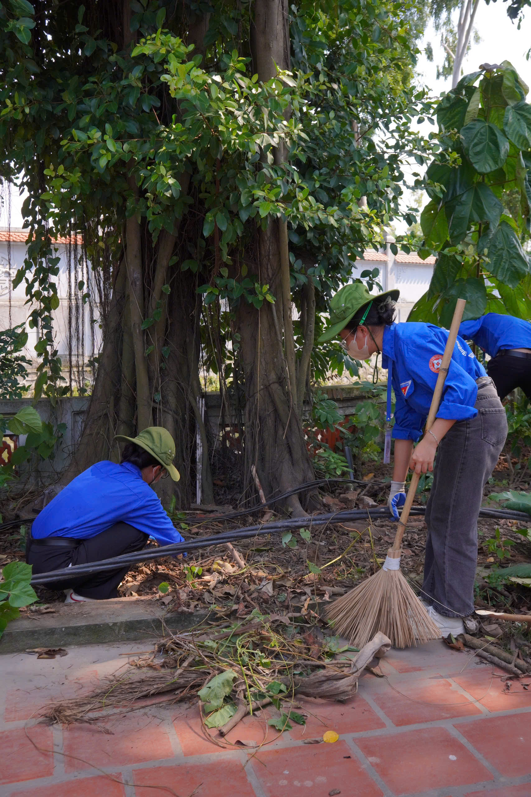 Từ sáng sớm, khuôn viên trường đã rộn ràng tinh thần tình nguyện. Các đội hình sinh viên nhanh chóng tập trung, mang theo dụng cụ vệ sinh và chia nhóm theo từng khu vực: giảng đường, nhà thực hành, khu ký túc xá, khuôn viên cây xanh và cổng trường. Công việc được triển khai nhịp nhàng: quét dọn rác thải, thu gom lá cây, cọ rửa khu vực thí nghiệm, vệ sinh đường nội bộ và bổ sung cây xanh tại một số điểm sinh hoạt chung của sinh viên. Không khí làm việc khẩn trương nhưng đầy hứng khởi, thể hiện tinh thần trách nhiệm và đoàn kết của tuổi trẻ trường y.