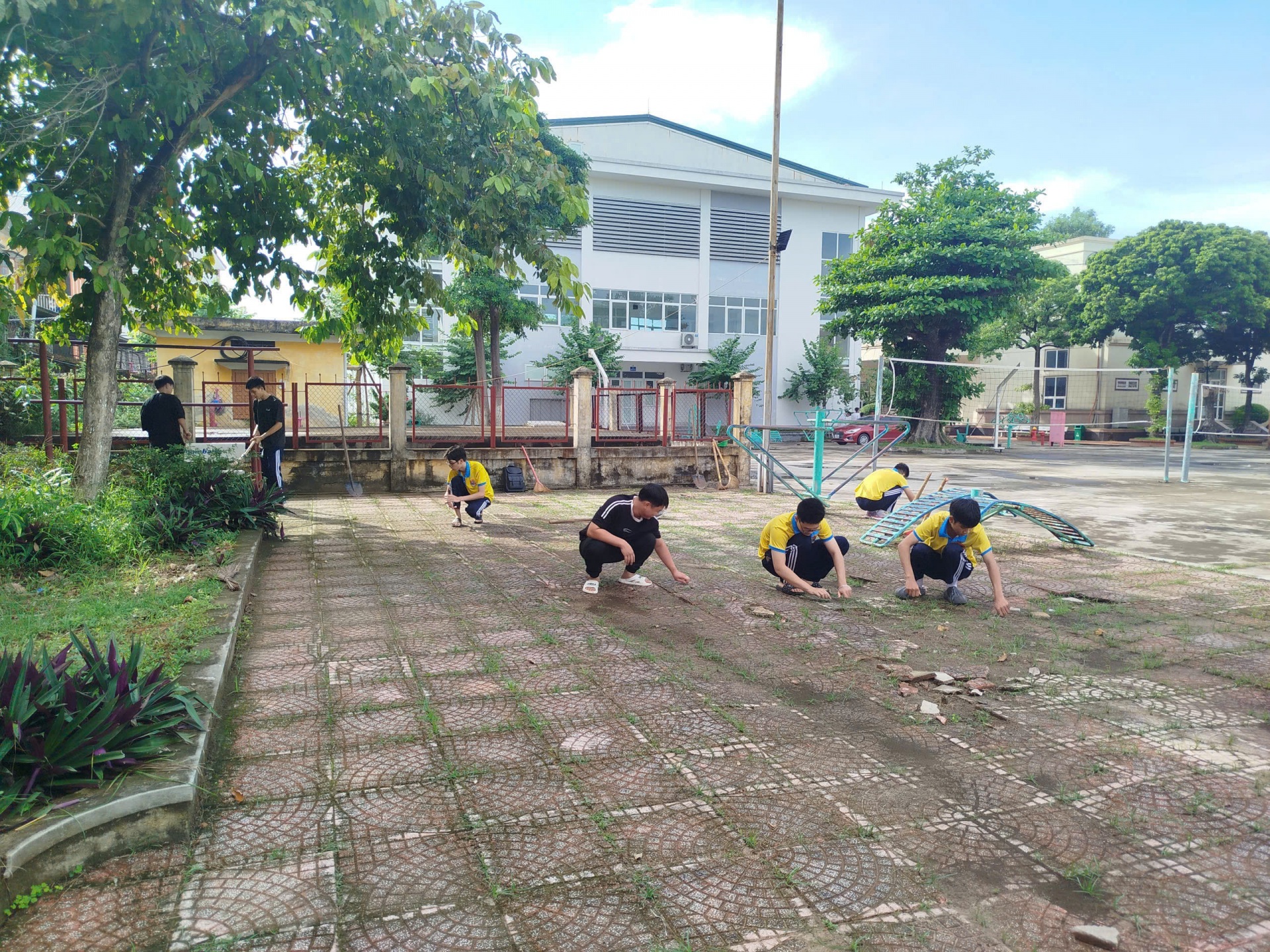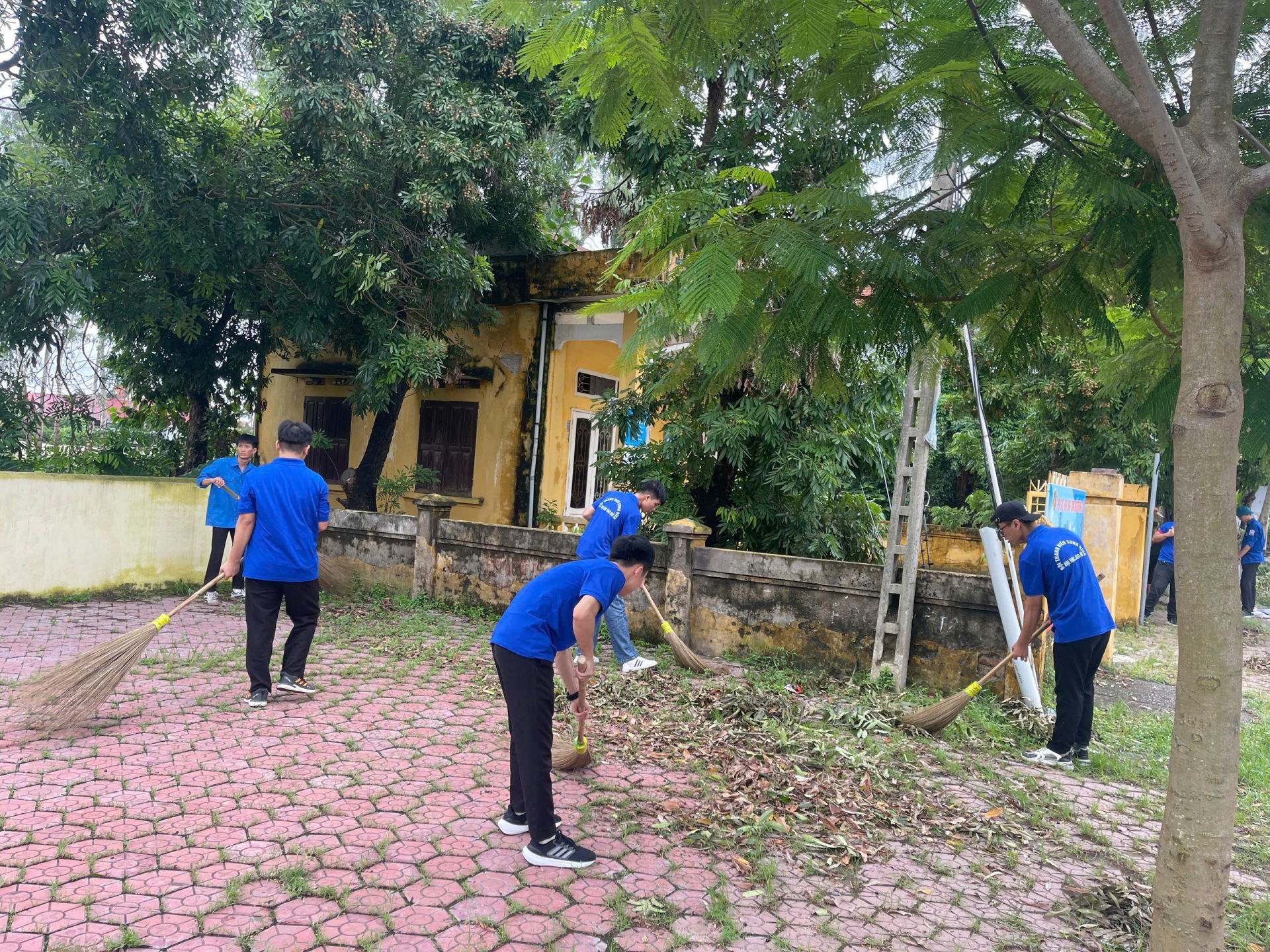 Ngay từ đầu giờ sáng, các đội hình thanh niên đã nhanh chóng triển khai nhiều phần việc thiết thực: quét dọn sân trường, thu gom rác thải, vệ sinh khu vực giảng đường, thu gom rác tại khu vực ký túc xá. Không khí làm việc diễn ra sôi nổi, nghiêm túc, tạo nên diện mạo sạch – đẹp – thoáng đãng cho nhà trường.