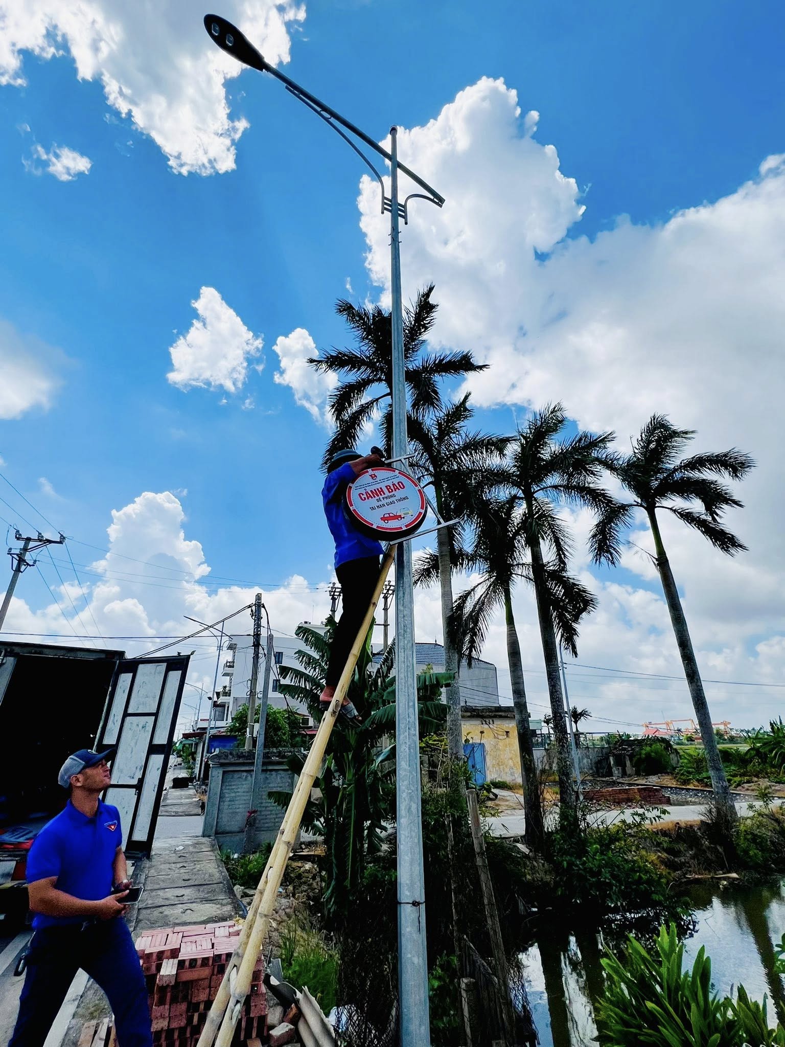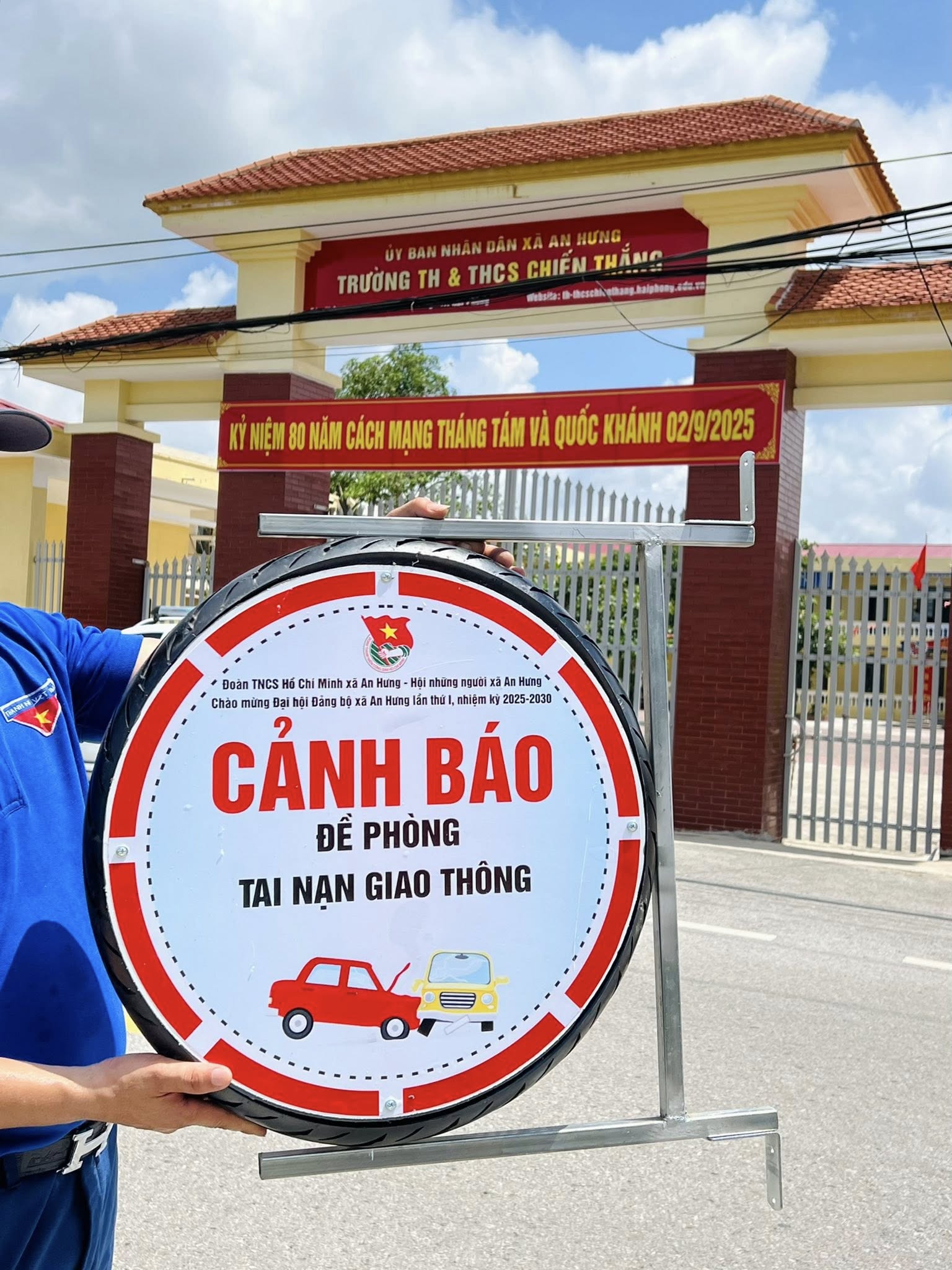 Công trình biển cảnh báo an toàn giao thông được làm từ những chiếc lốp xe cũ, tái sử dụng, được chính các bạn đoàn viên, thanh niên làm sạch, sơn phủ, gắn biển cảnh báo và bố trí tại khu vực ẩn nguy cơ tai nạn như ngã tư, khu vực chợ, trường học... Không chỉ mang thông điệp bảo vệ môi trường, mà còn là tín hiệu cảnh báo nhắc nhở người dân cẩn trọng, hạn chế tai nạn thương tâm xảy ra.