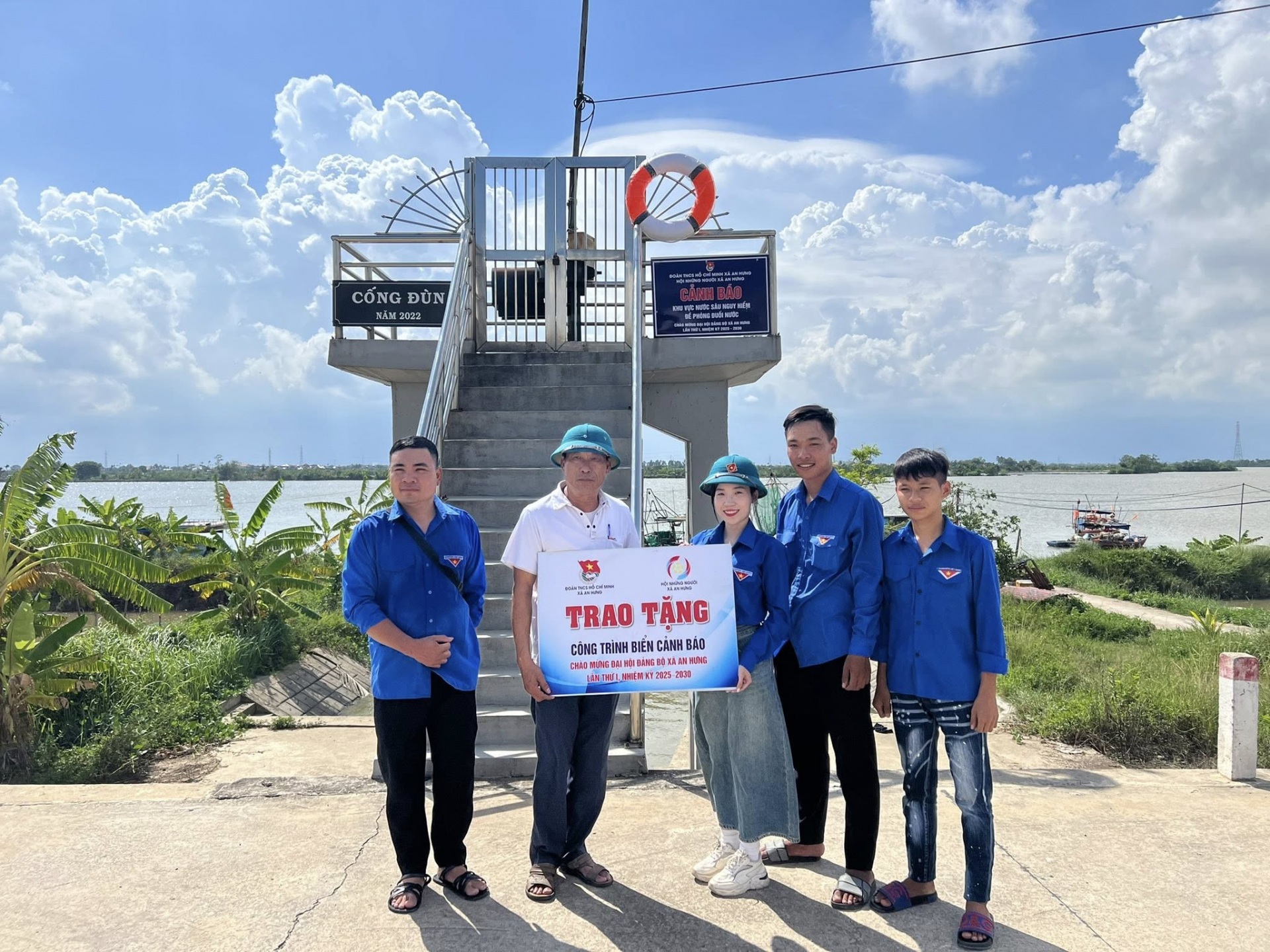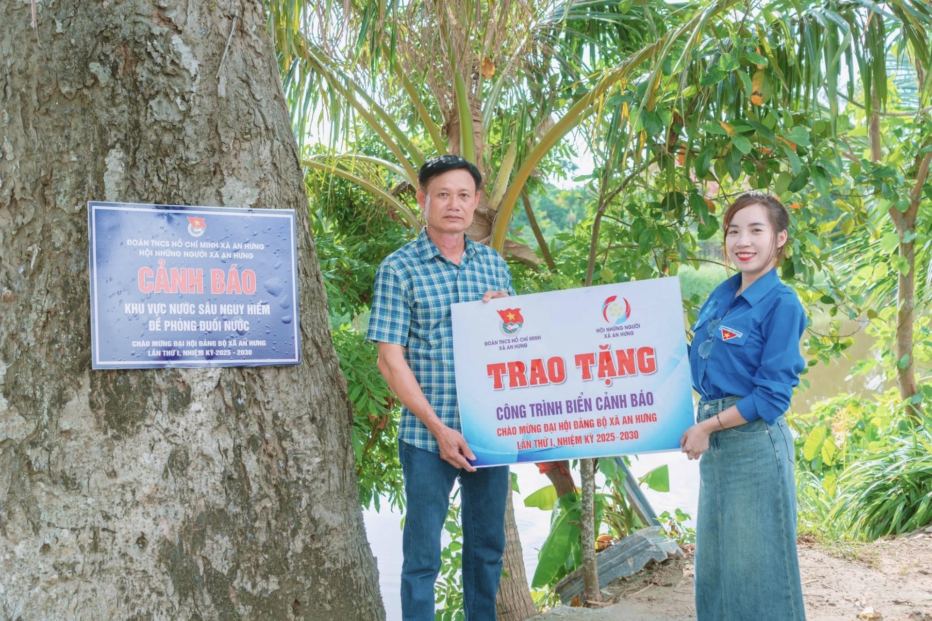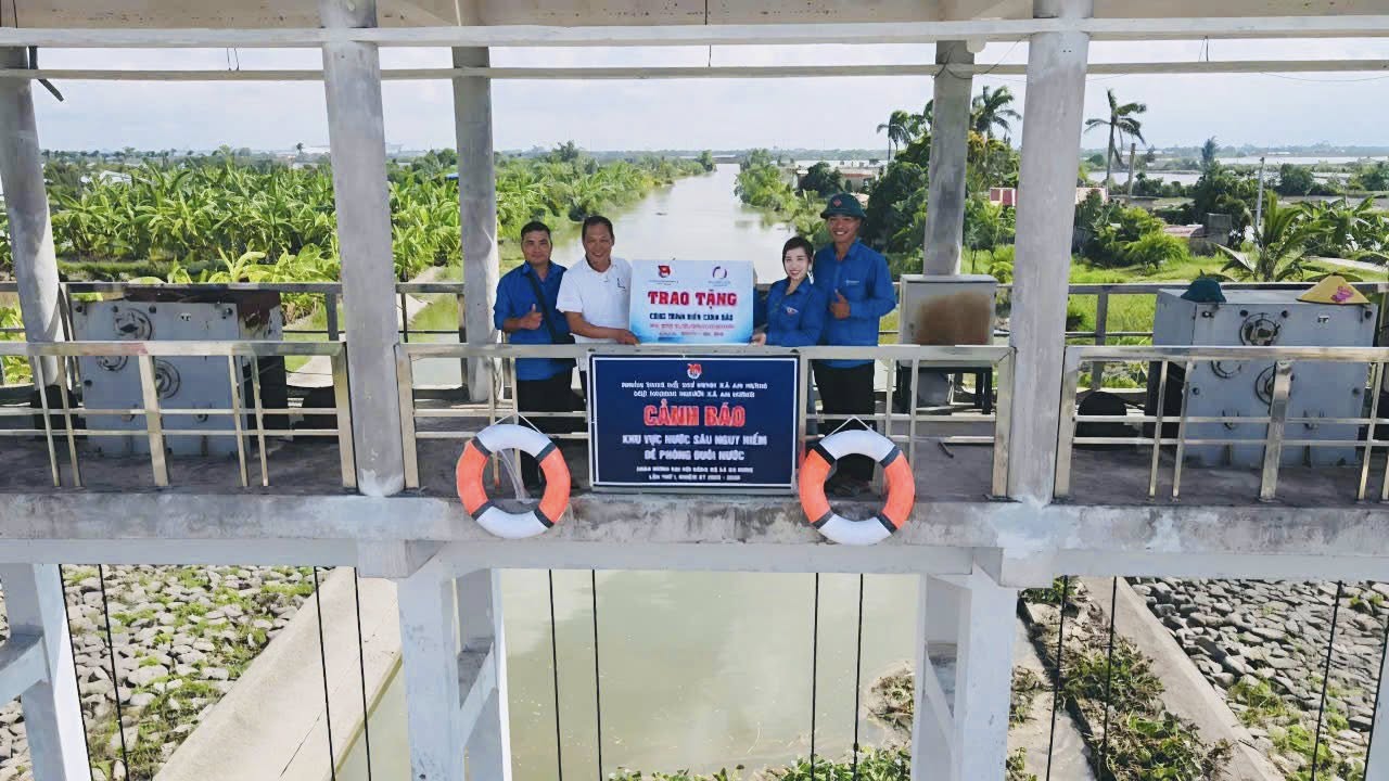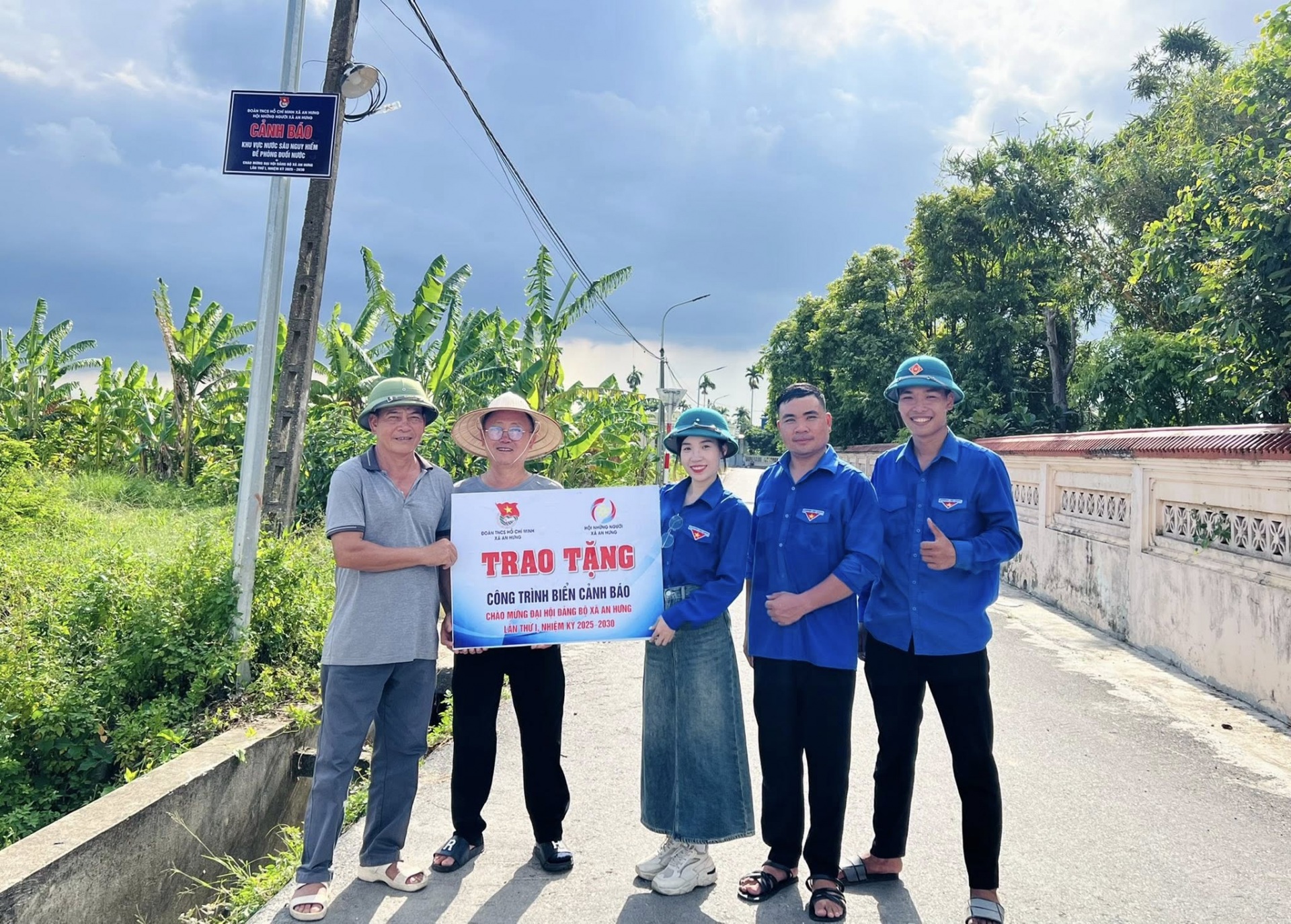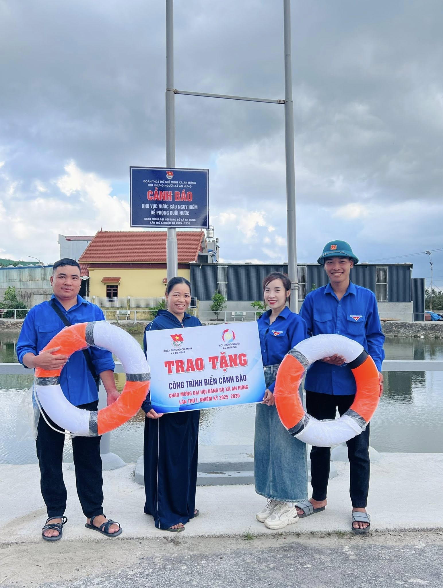 ĐOÀN XÃ AN HƯNG TRAO TẶNG CÔNG TRÌNH BIỂN CẢNH BÁO CHỐNG ĐUỐI NƯỚC, ĐỀ PHÒNG TAI NẠN GIAO THÔNG; TRANG BỊ PHAO CỨU SINH TẠI KHU VỰC AO, HỒ TIỀM ẨN NGUY CƠ ĐUỐI NƯỚC
