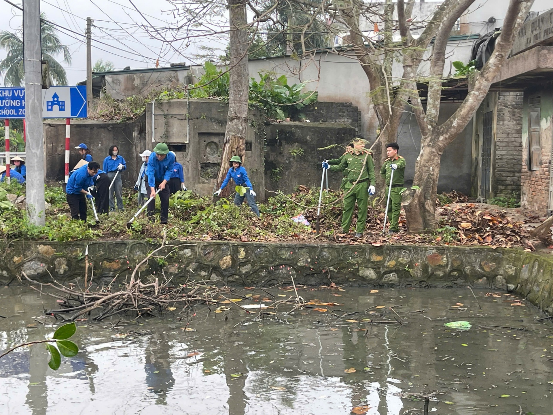 Ngay sau Lễ phát động Tháng Thanh niên năm 2026, Ban Thường vụ Đoàn xã An Thành tổ chức ra quân xóa điểm đen về rác thải tại khu vực cổng nghĩa trang liệt sỹ Ngũ Phúc, xã An Thành.