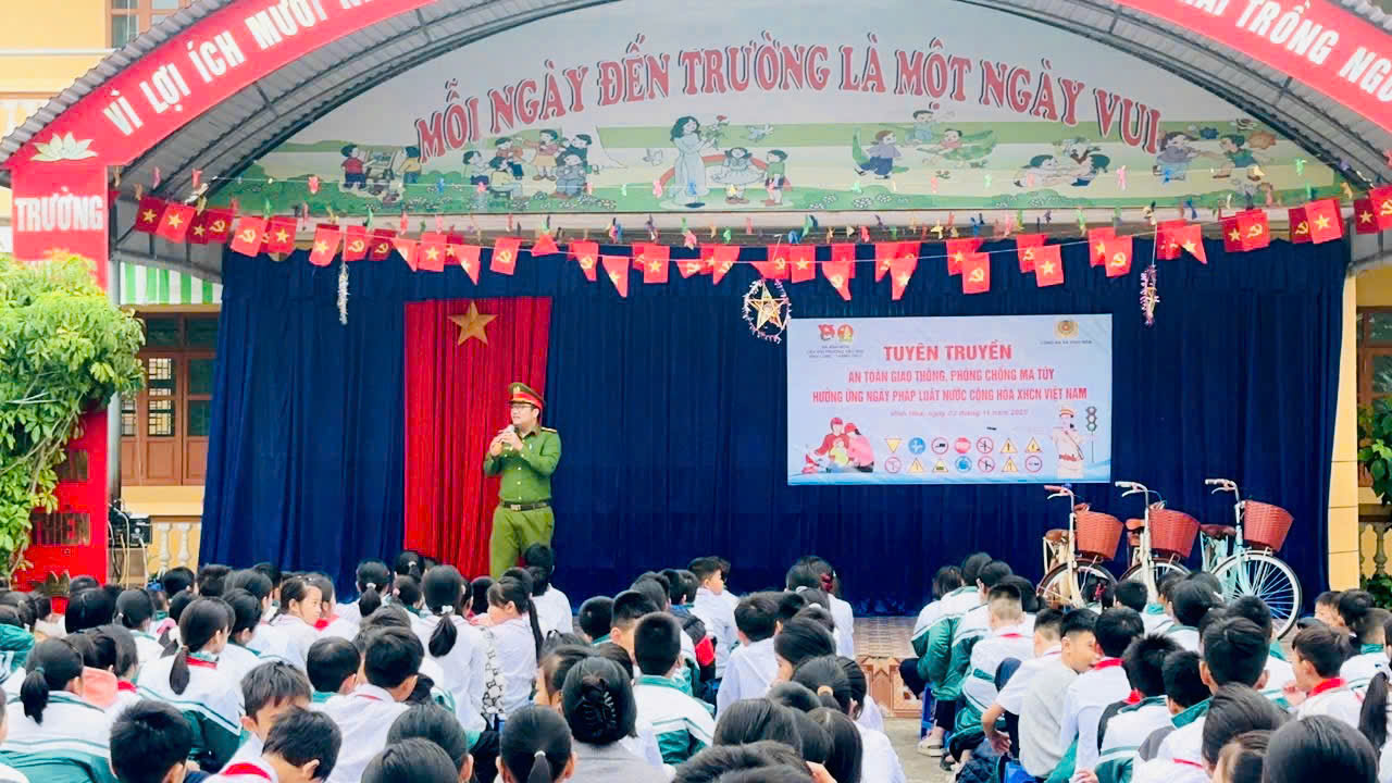 Ngày 3/11/2025, Đoàn thanh niên - Hội đồng đội xã chỉ đạo Liên đội Tiểu học Vĩnh Long - Thắng Thủy tổ chức tuyên truyền an toàn giao thông, phòng chống ma túy