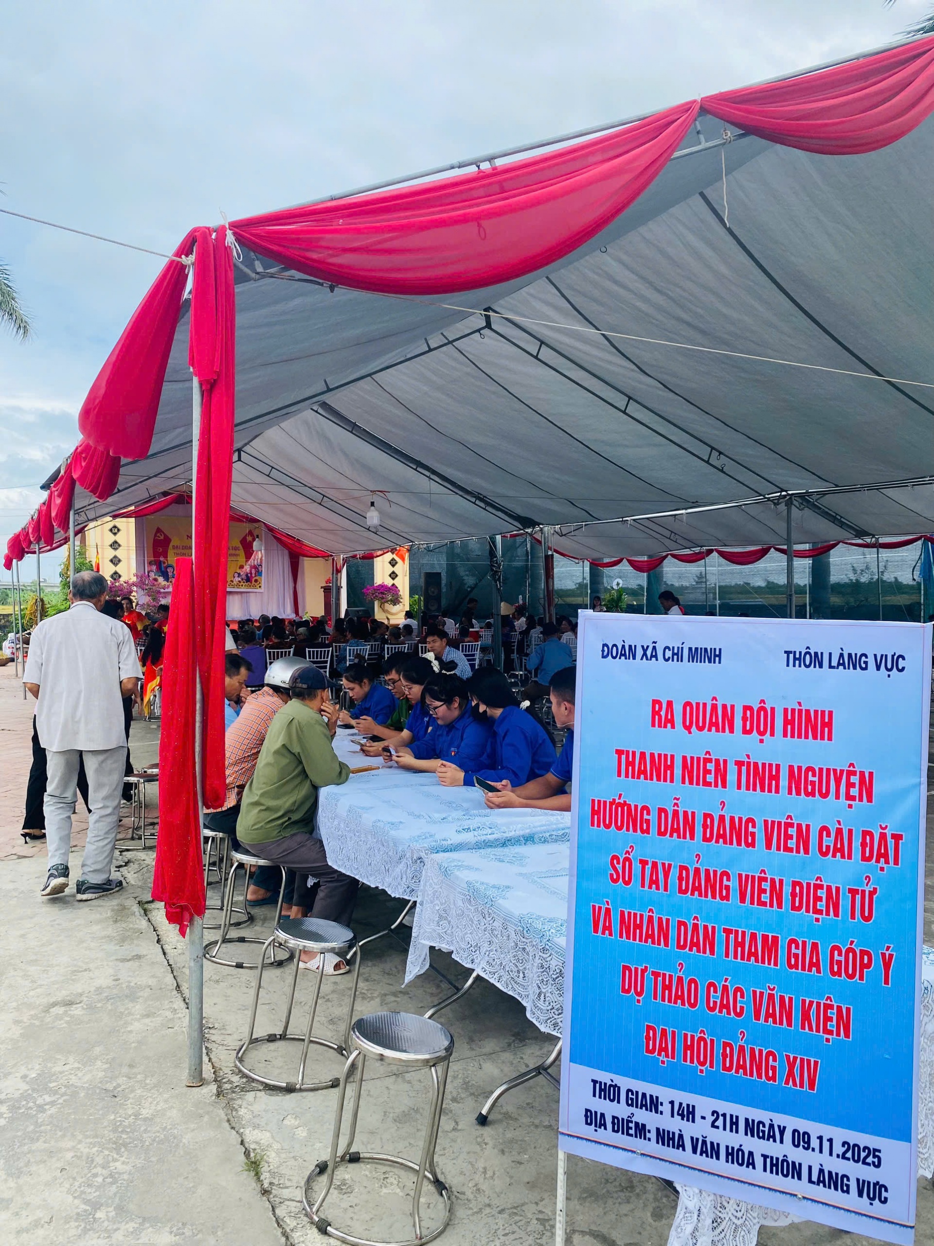 Ngày 09 tháng 11 năm 2025, trong không khí hân hoan của Ngày hội Đại đoàn kết toàn dân tộc thôn Làng Vực, tại Nhà văn hóa thôn, Đoàn xã Chí Minh ra quân đội hình "Bình dân học vụ số" hướng dẫn đảng viên cài đặt sổ tay đảng viên điện tử và nhân dân tham gia góp ý vào các dự thảo văn kiện Đại hội Đảng XIV cho hơn 100 người dân.