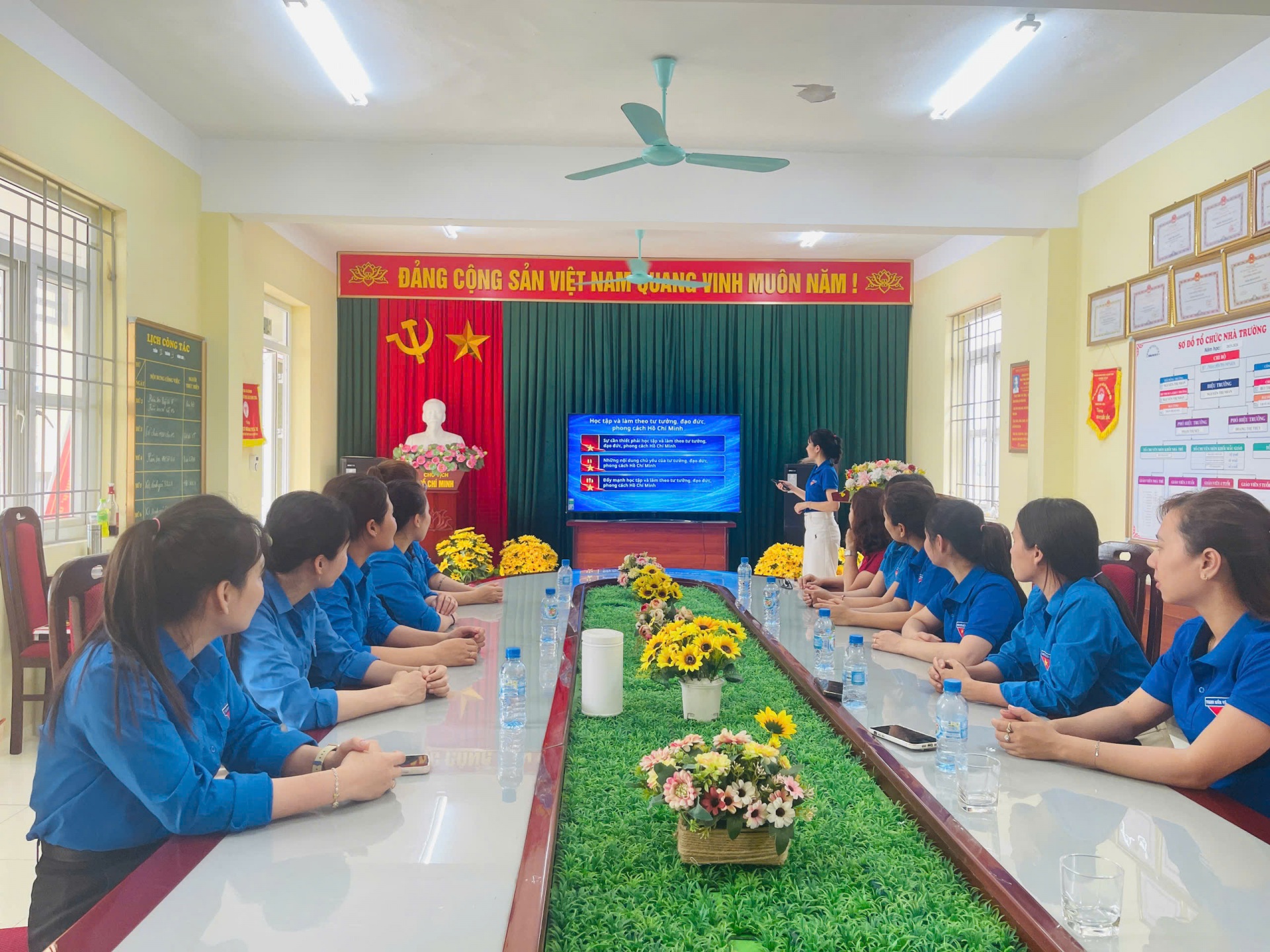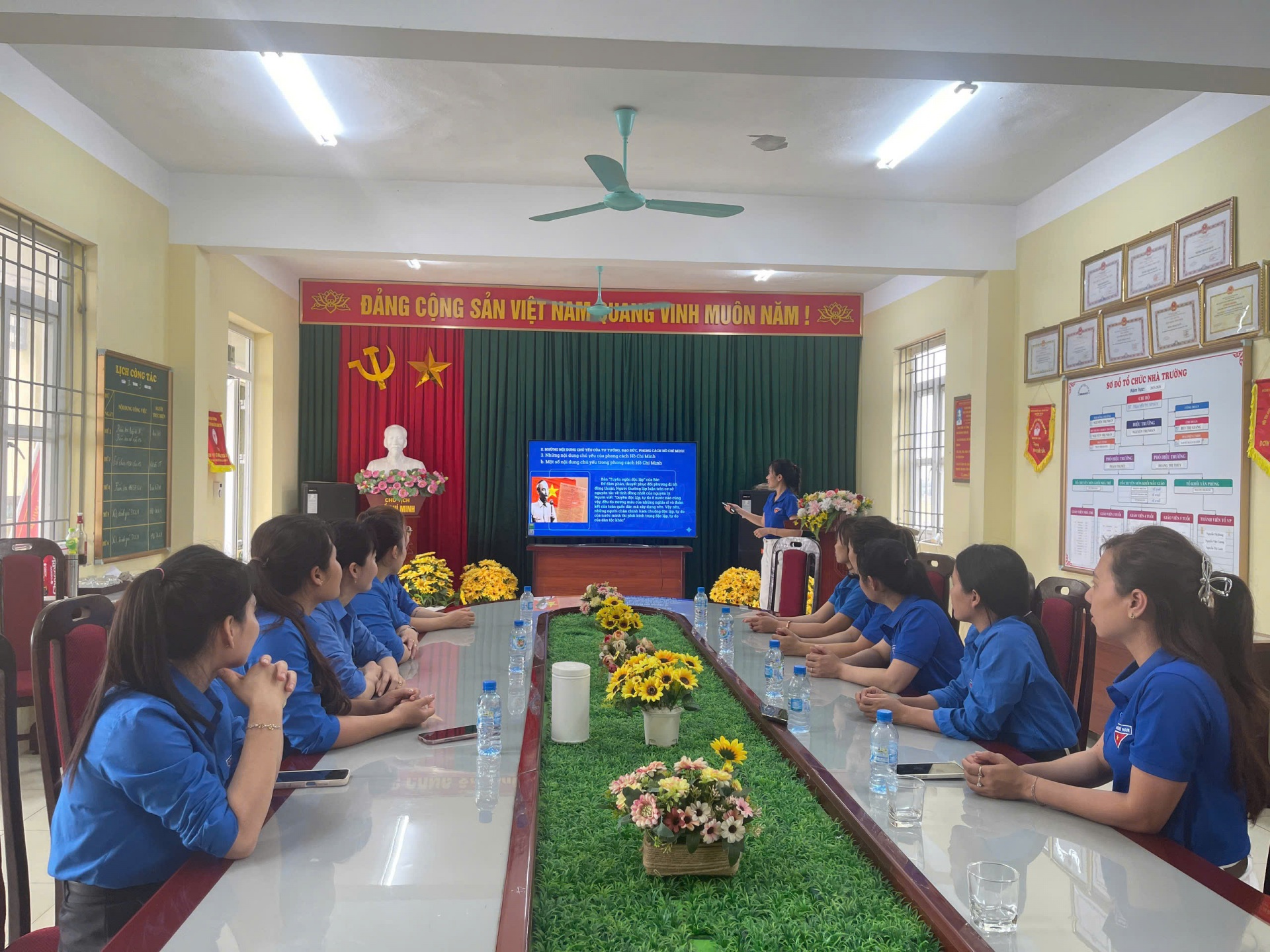 Các đồng chí cán bộ Đoàn và đoàn viên trường Mầm non Văn Tô đã được tìm hiểu về tấm gương đạo đức, phong cách Hồ Chí Minh; công tác đẩy mạnh học tập và làm theo tấm gương đạo đức Hồ Chí Minh trong giai đoạn hiện nay, phát huy những phẩm chất đạo đức cần thiết và sức mạnh của người Việt Nam trong thời đại hội nhập, mở cửa nền kinh tế và phương pháp tuyên truyền, vận động nhân dân học tập, làm theo tấm gương đạo đức của Bác Hồ.