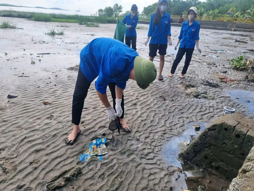 Đoàn xã Hùng Thắng ra quân ngày chủ nhật xanh dọn dẹp bãi biển, trả lại môi trường trong sạch