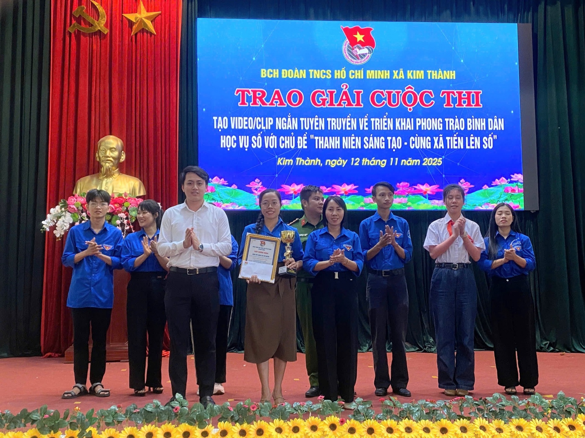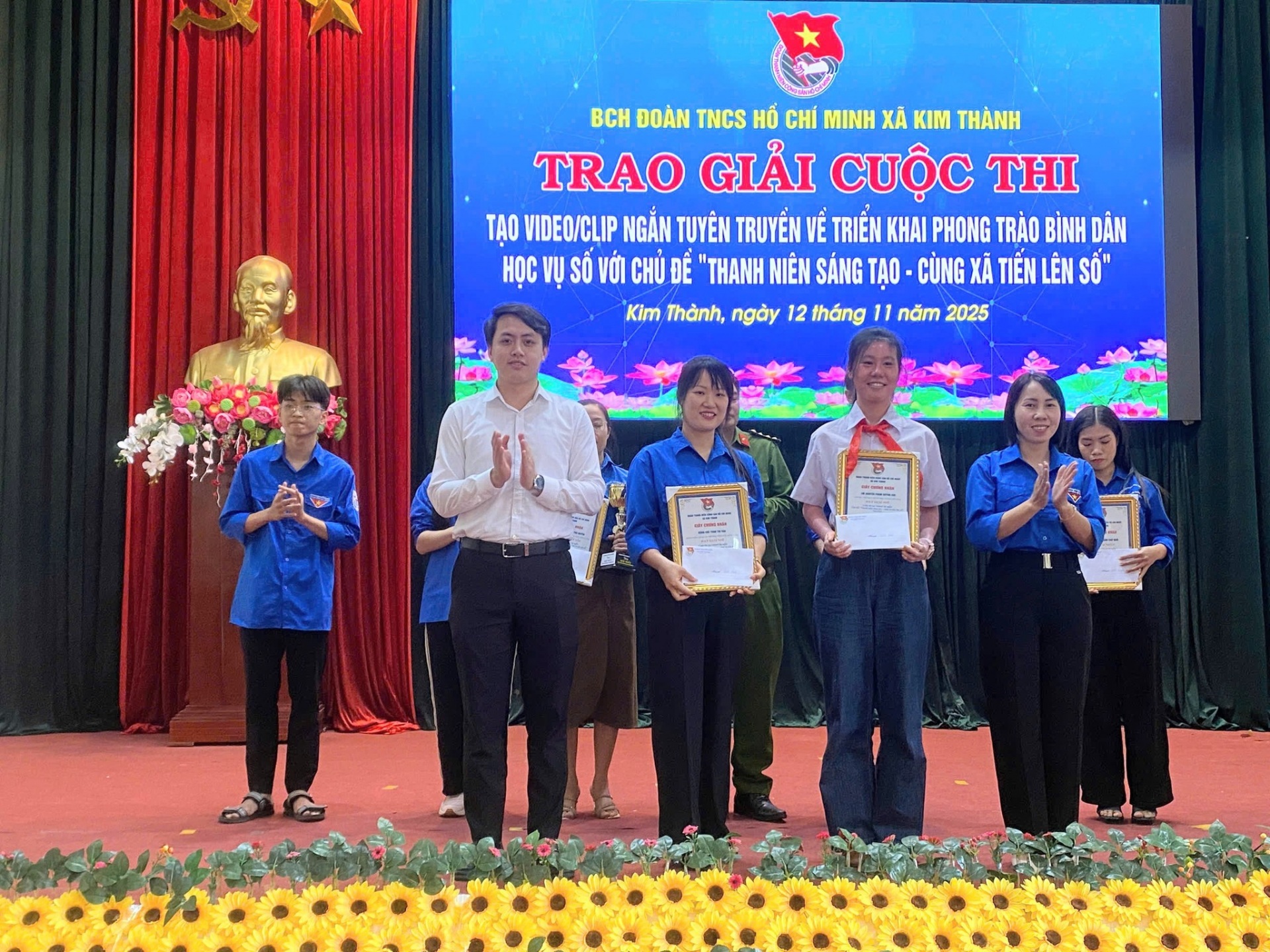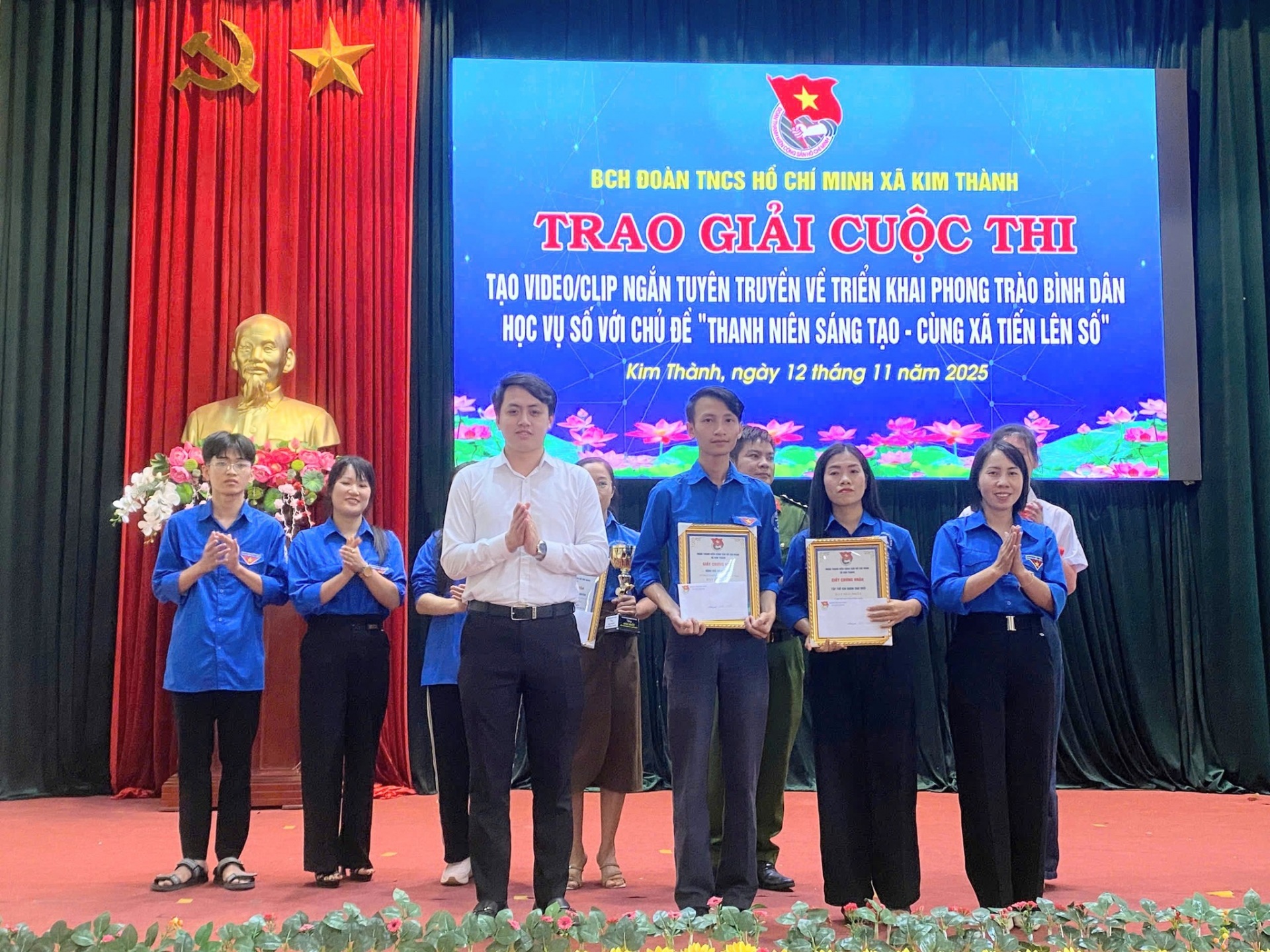 ĐOÀN XÃ KIM THÀNH: TỔNG KẾT, TRAO GIẢI CUỘC THI TẠO VIDEO/CLIP NGẮN TUYÊN TRUYỀN VỀ TRIỂN KHAI PHONG TRÀO BÌNH DÂN HỌC VỤ SỐ TRÊN ĐỊA BÀN XÃ NĂM 2025 VỚI CHỦ ĐỀ “THANH NIÊN SÁNG TẠO - CÙNG XÃ TIẾN LÊN SỐ”