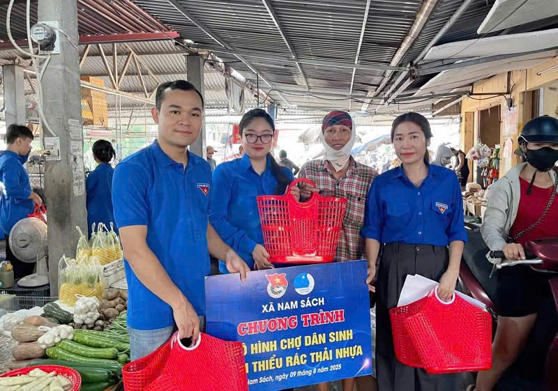 Ngày 9/8/2025 ,Đoàn triển khai mô hình chợ dân sinh giảm thiểu rác thải nhựa tại chợ Hóp - Xã Nam Sách Với mục tiêu "Nhà nhà hạn chế rác thải nhựa, người người phòng chống ô nhiễm rác thải nhựa, xã hội tiến đến nói không với rác thải nhựa”,