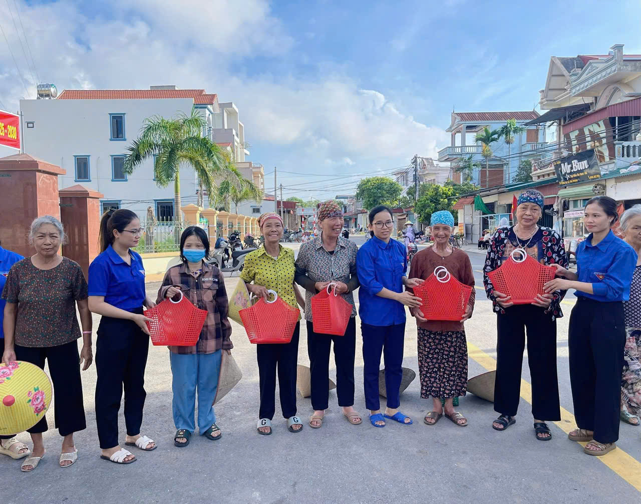 Tại chương trình, Đoàn xã đã trao tặng làn nhựa đi chợ cho nhiều hộ dân.